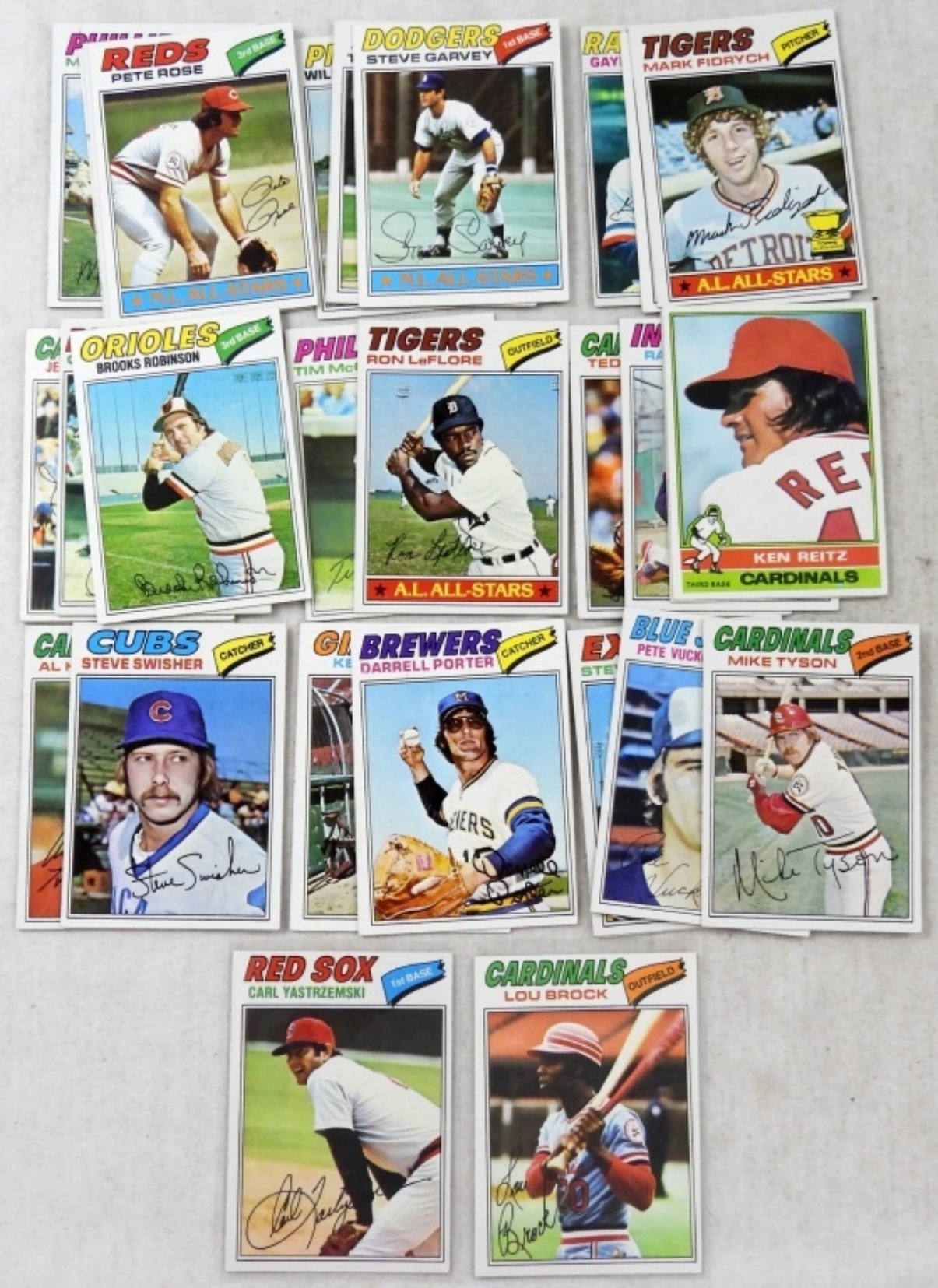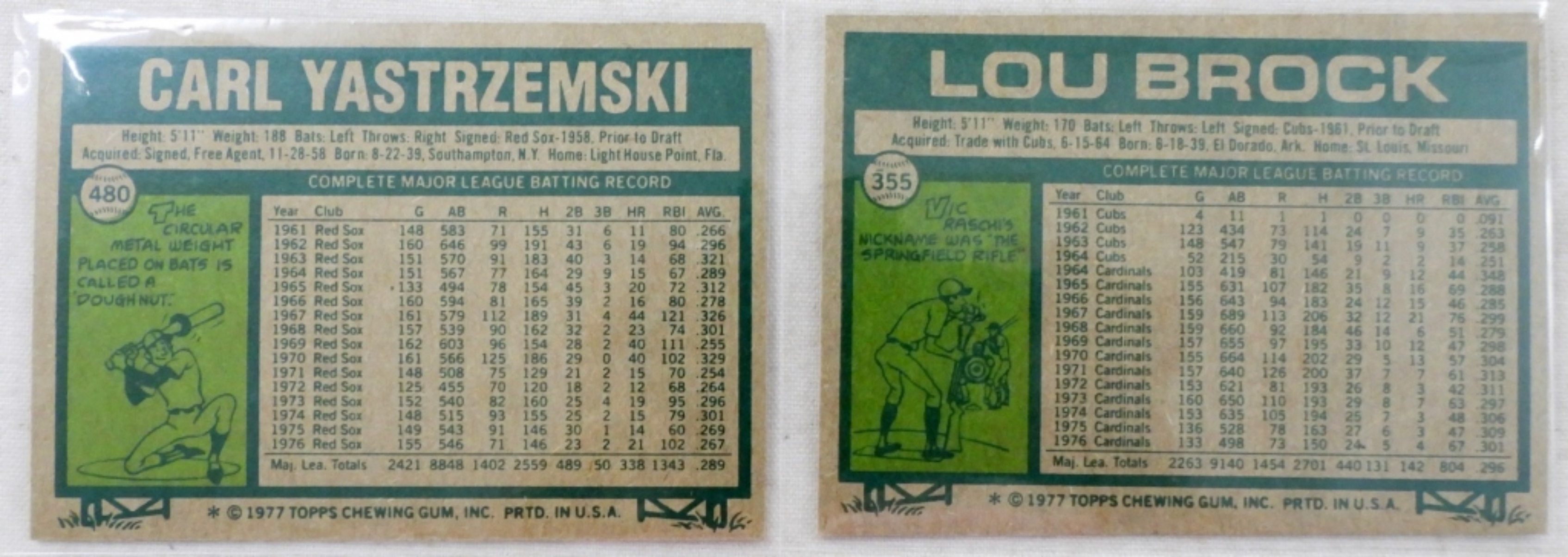 (33) 1977 TOPPS BASEBALL CARDS ,#355 LOU BROCK ,#480 CARL YASTRZEMSKI & MORE EX