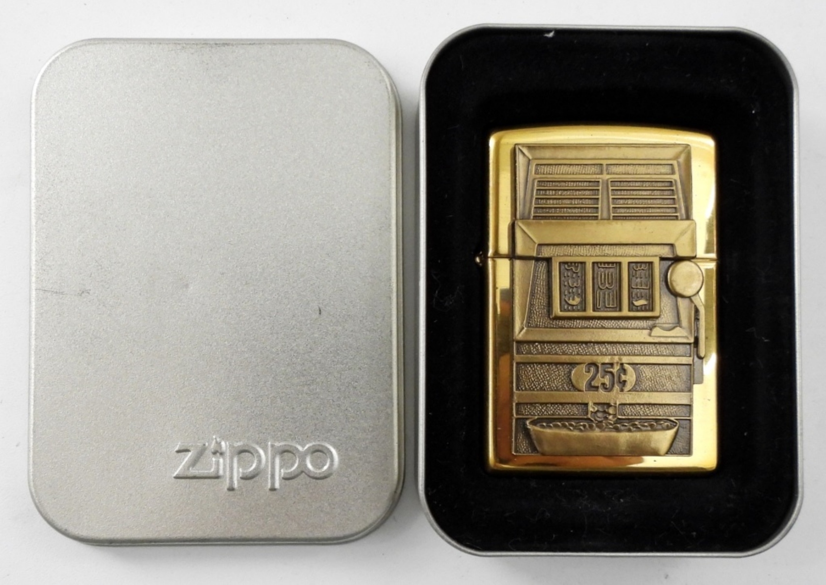 1997 UNFIRED BRASS SLOT MACHINE ZIPPO IN ORIGINAL TIN AND SLEEVE