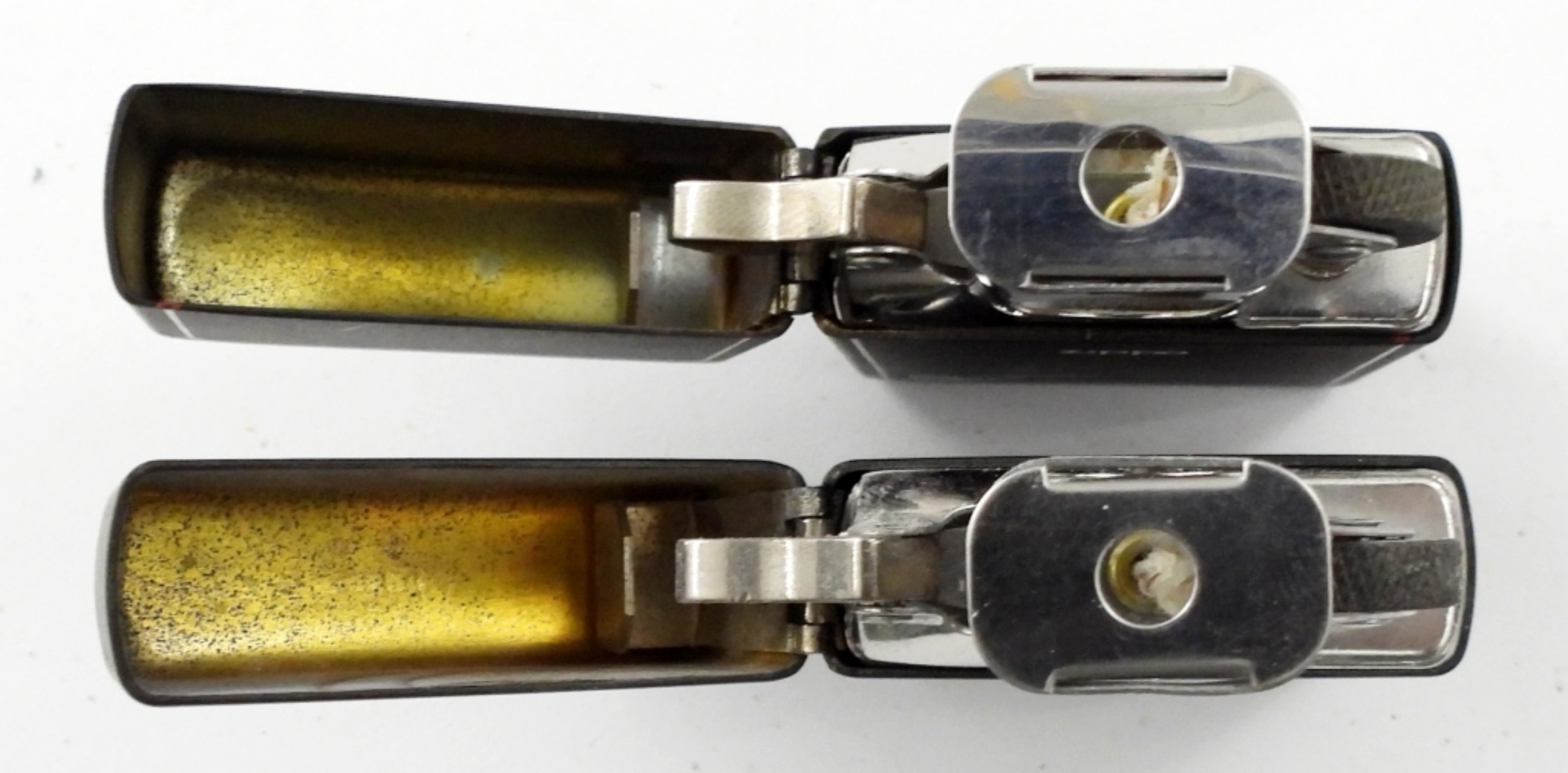 (2) 1994 UNFIRED BLACK MATTE CIGAR ZIPPO , 1 BLACK MATT WITH RED TRIM, 1 BLACK MATT( INSIDE CIGAR TIP IS LOOSE)