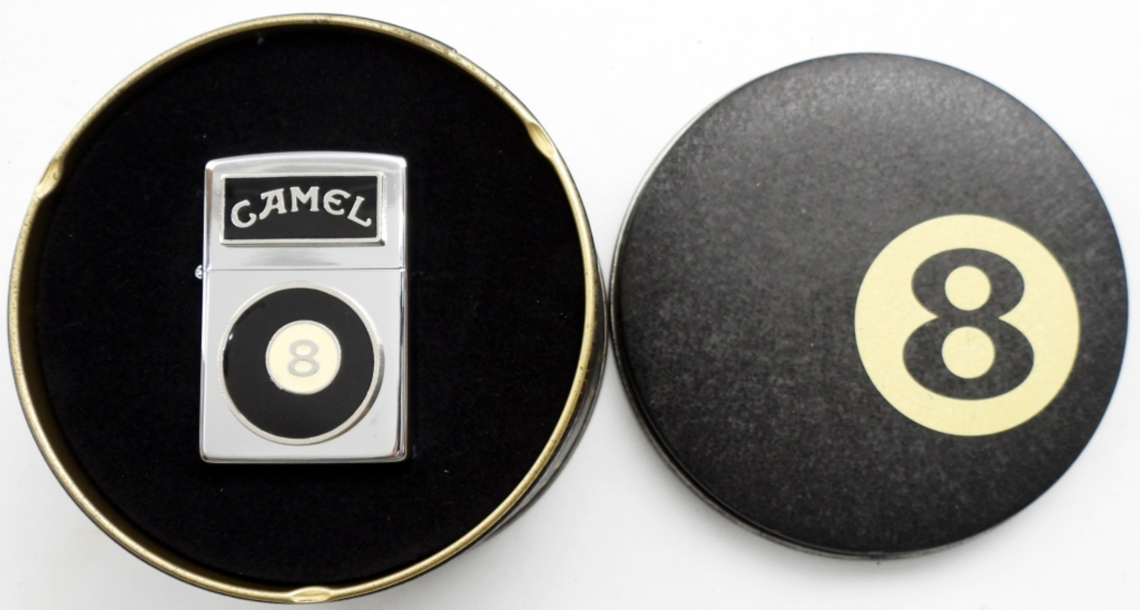 1994 UNFIRED CAMEL 8 BALL ZIPPO IN ORIGINAL CAMEL TIN
