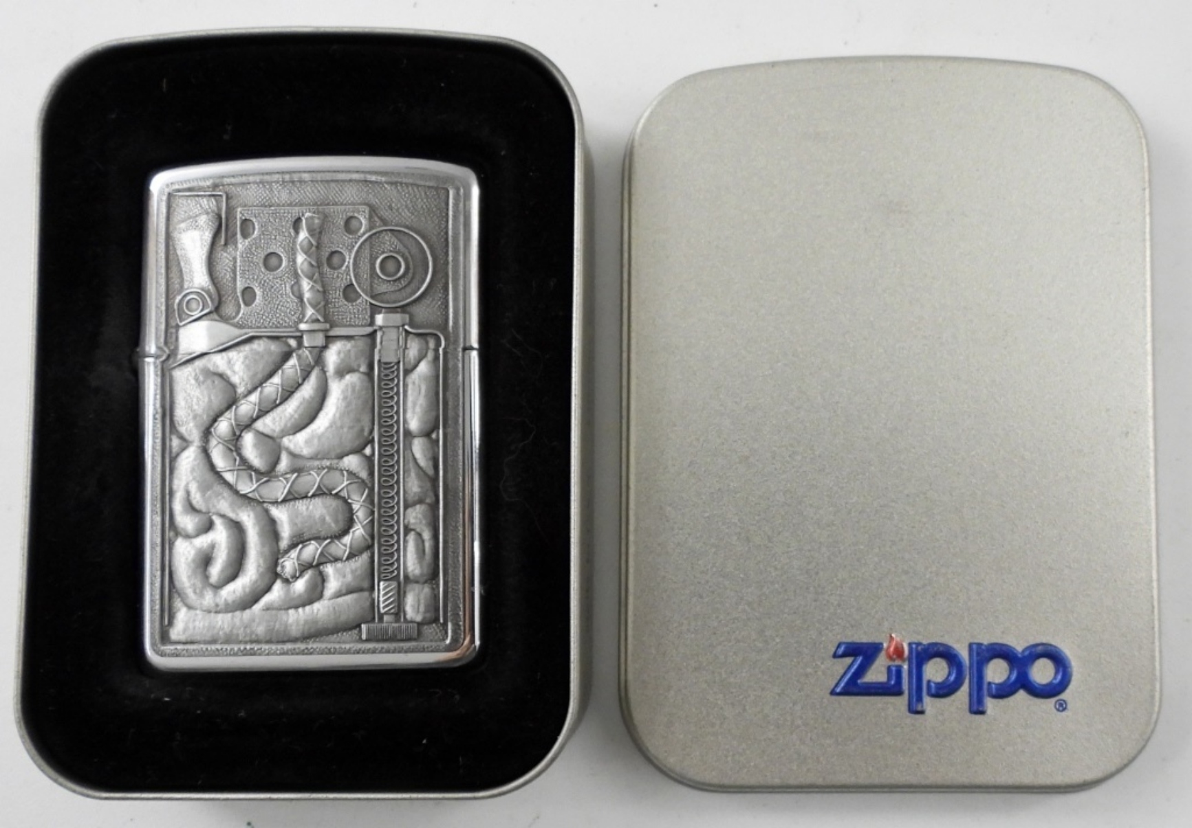 1996 SEALED /UNFIRED BARRETT SMYTHE X-RAY ZIPPO LIGHTER IN ORIGINAL TIN