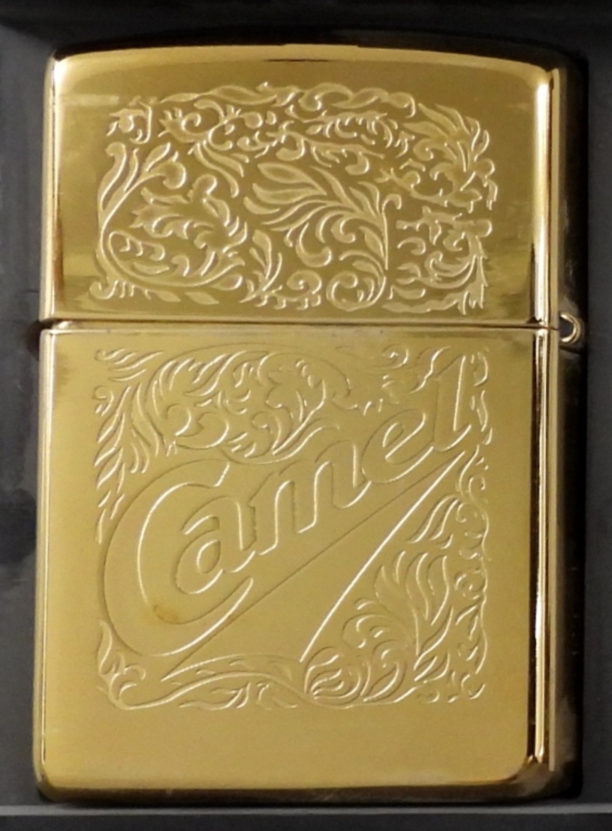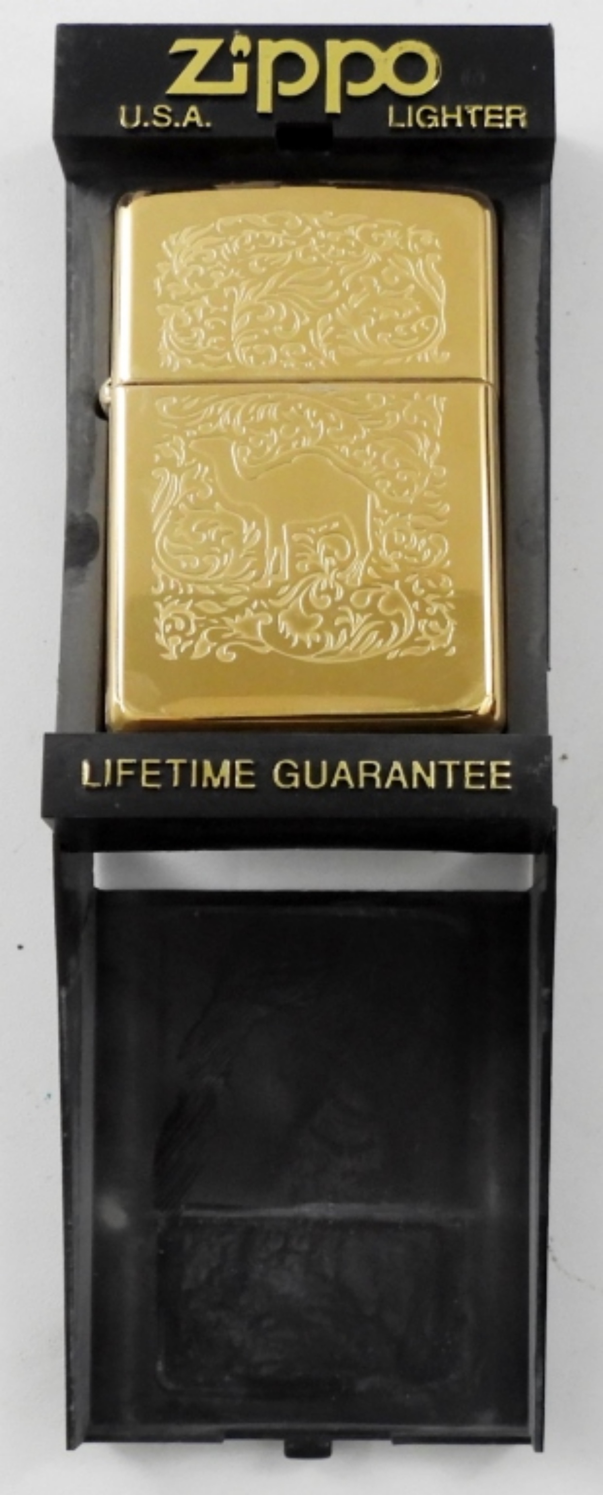 1996 UNFIRED BRASS CAMEL LOGO WESTERN 22K GOLD PLATED ZIPPO IN CASE