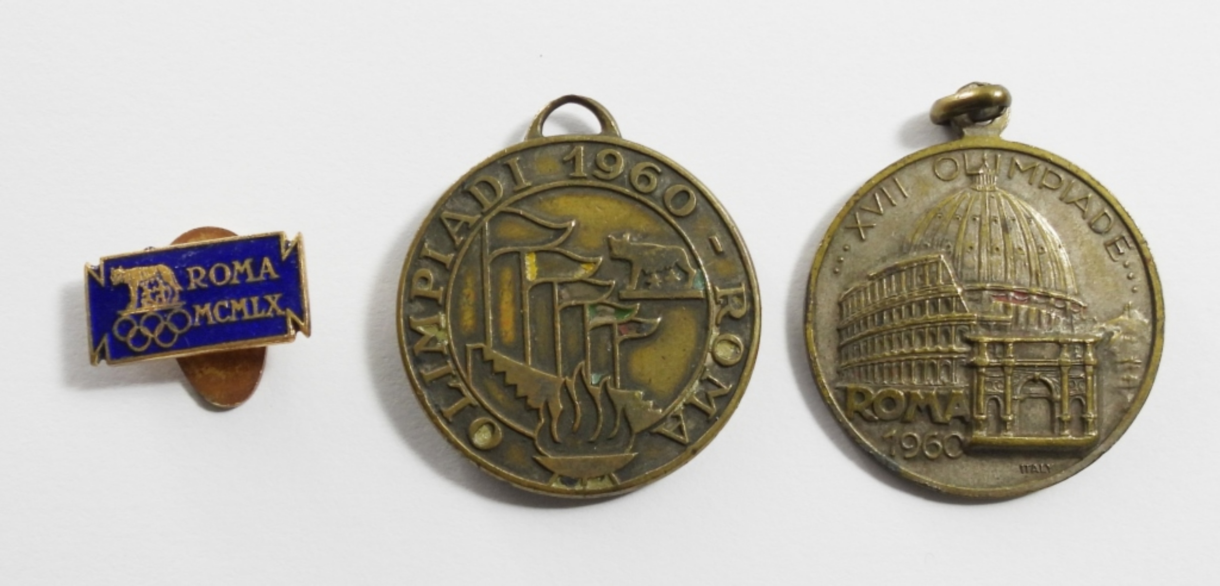 RARE MCMLX ENAMEL BUTTON & (2) 1960 ROMA PENDANTS