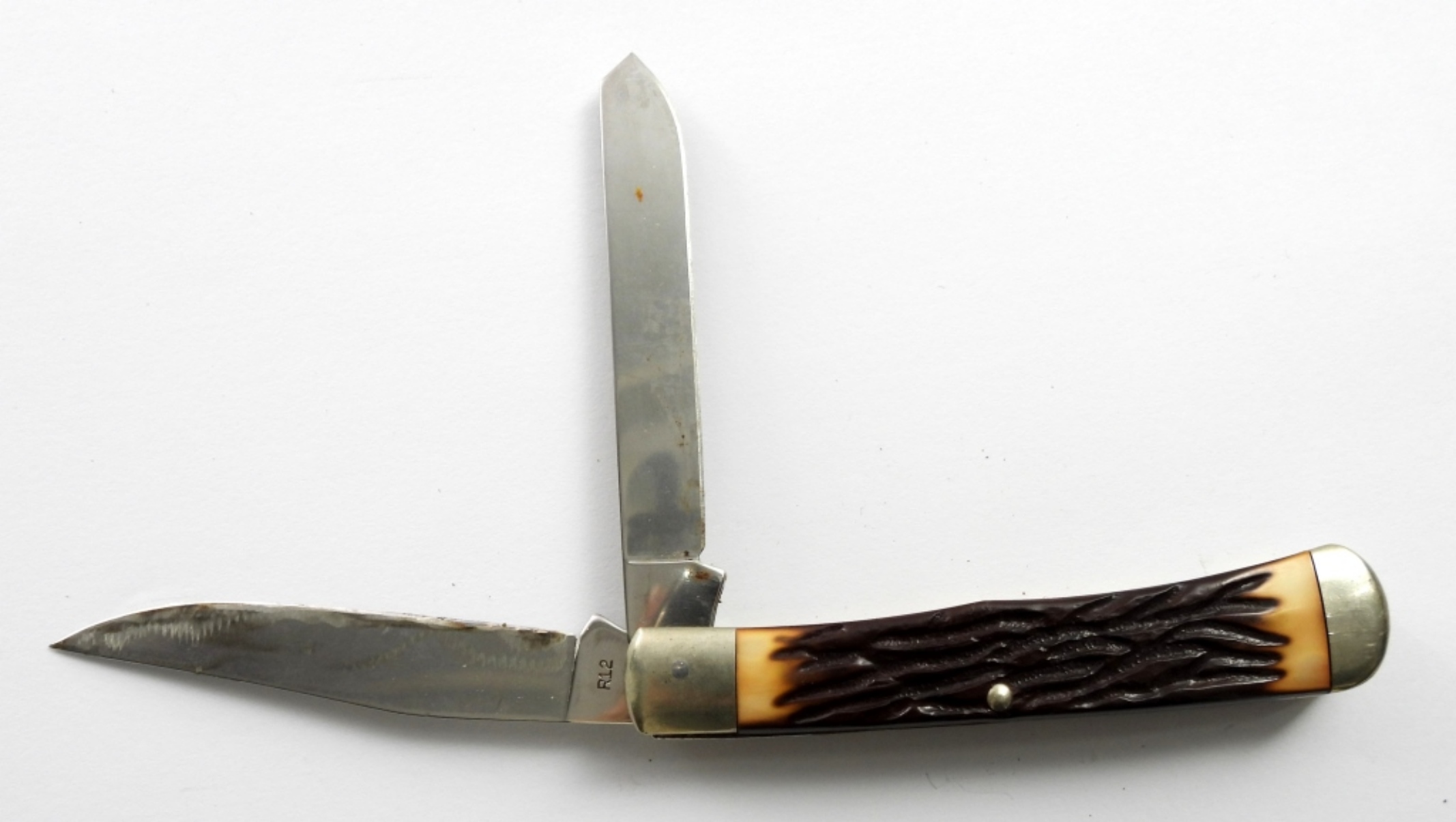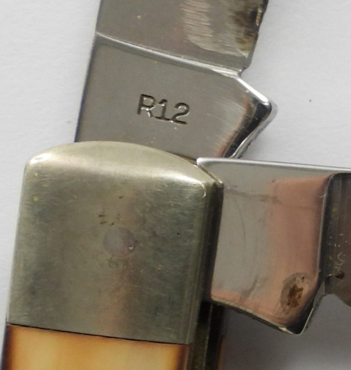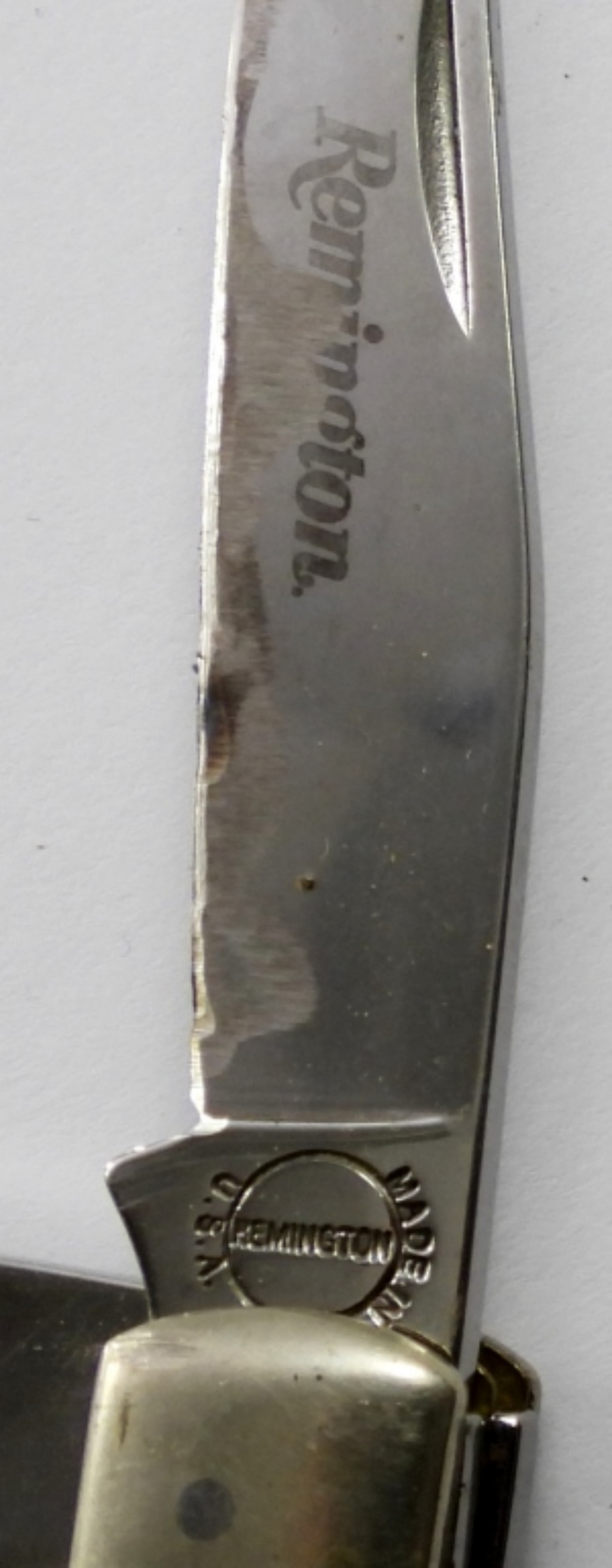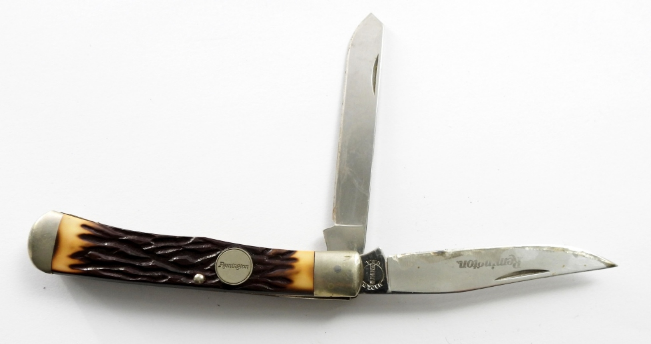 VTG REMMINGTON TRAPPER R12 POCKET KNIFE.3″ BLADE WIT HBROWN BONE LIKE HANDLE