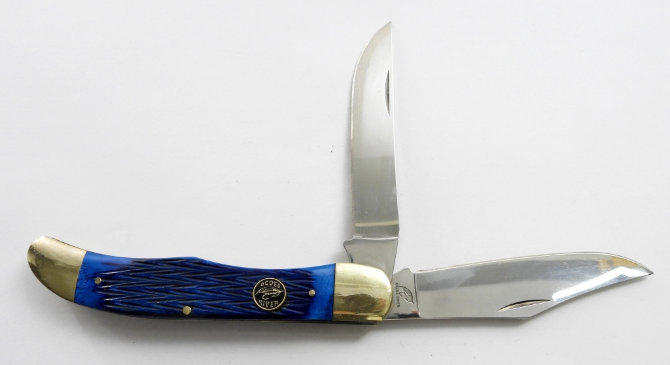 OCOEE RIVER 2 BLADE FOLDING POCKET KNIFE.4″ BLADE WITH A BLUE BONE HANDLE