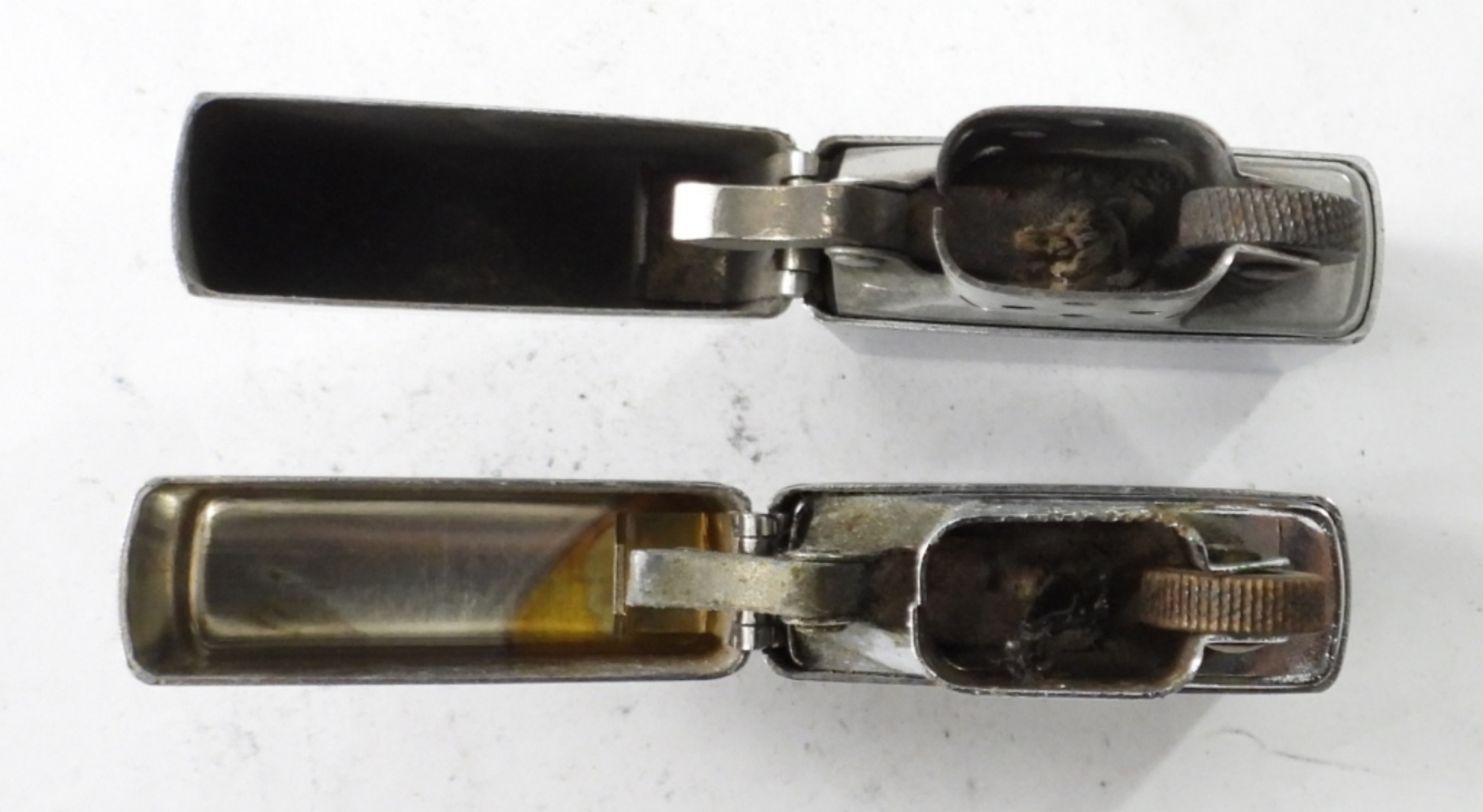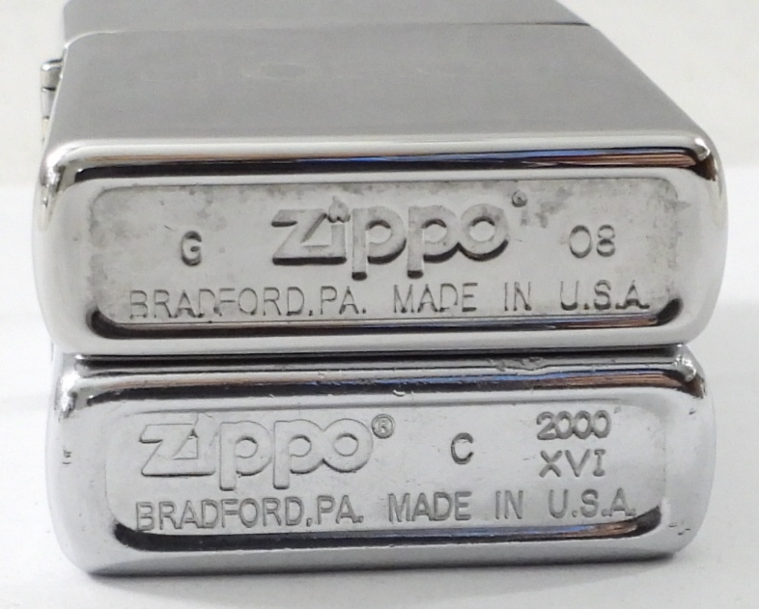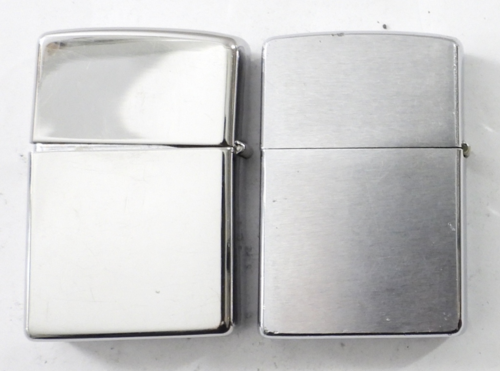 (2) SILVERTONE ZIPPOS, BOTH FIRED, ONE SHINEY CHROME FINISH ENGRAVED WITH “JORGE” ON FRONT, ONE BRUSHED SILVERTONE PLAIN