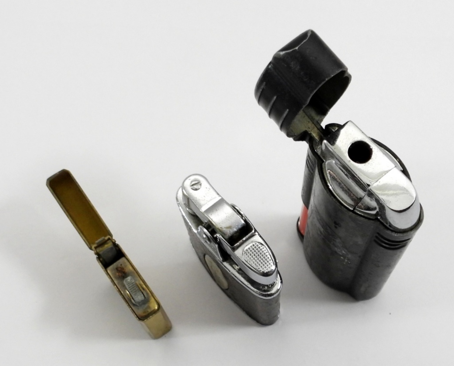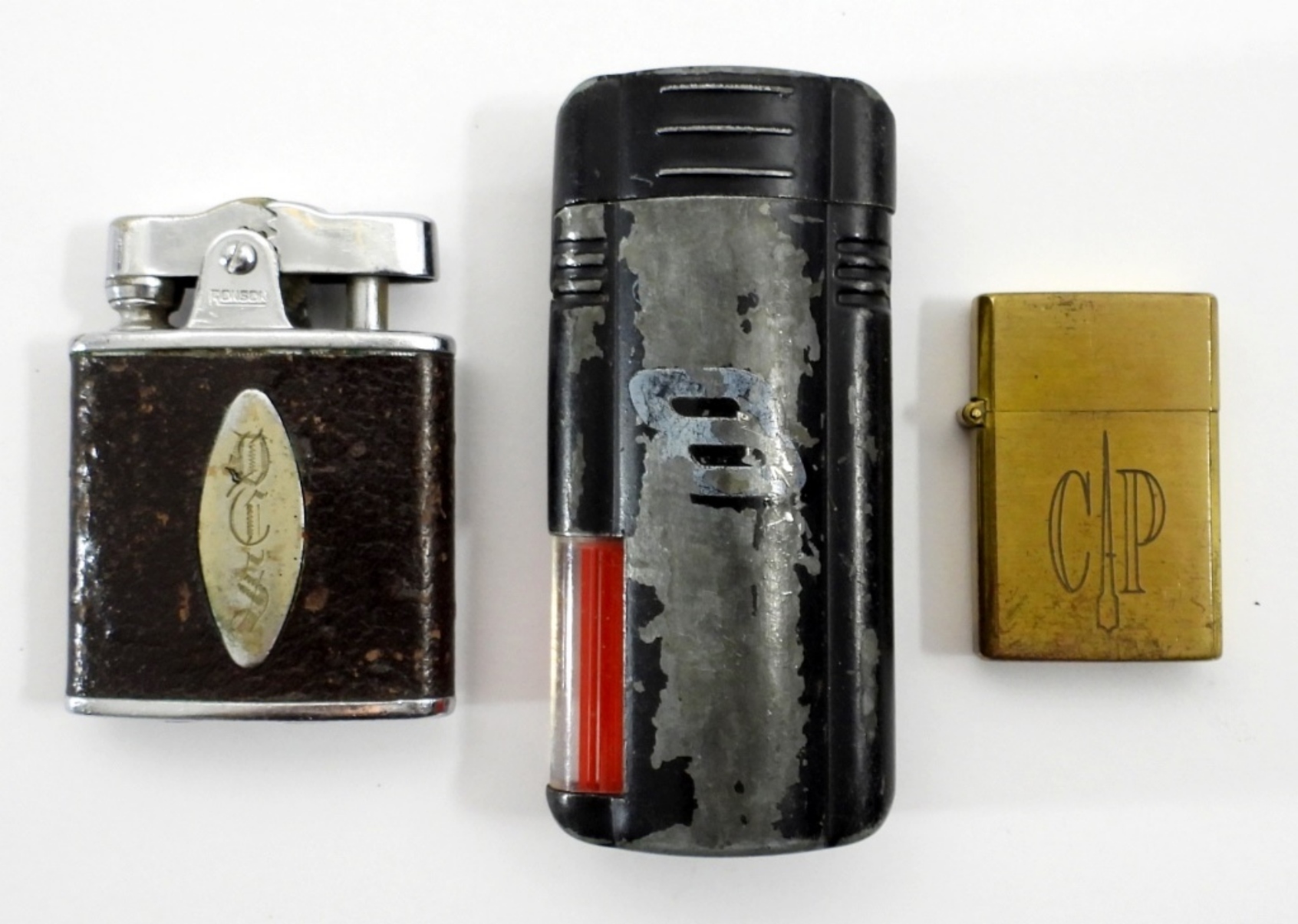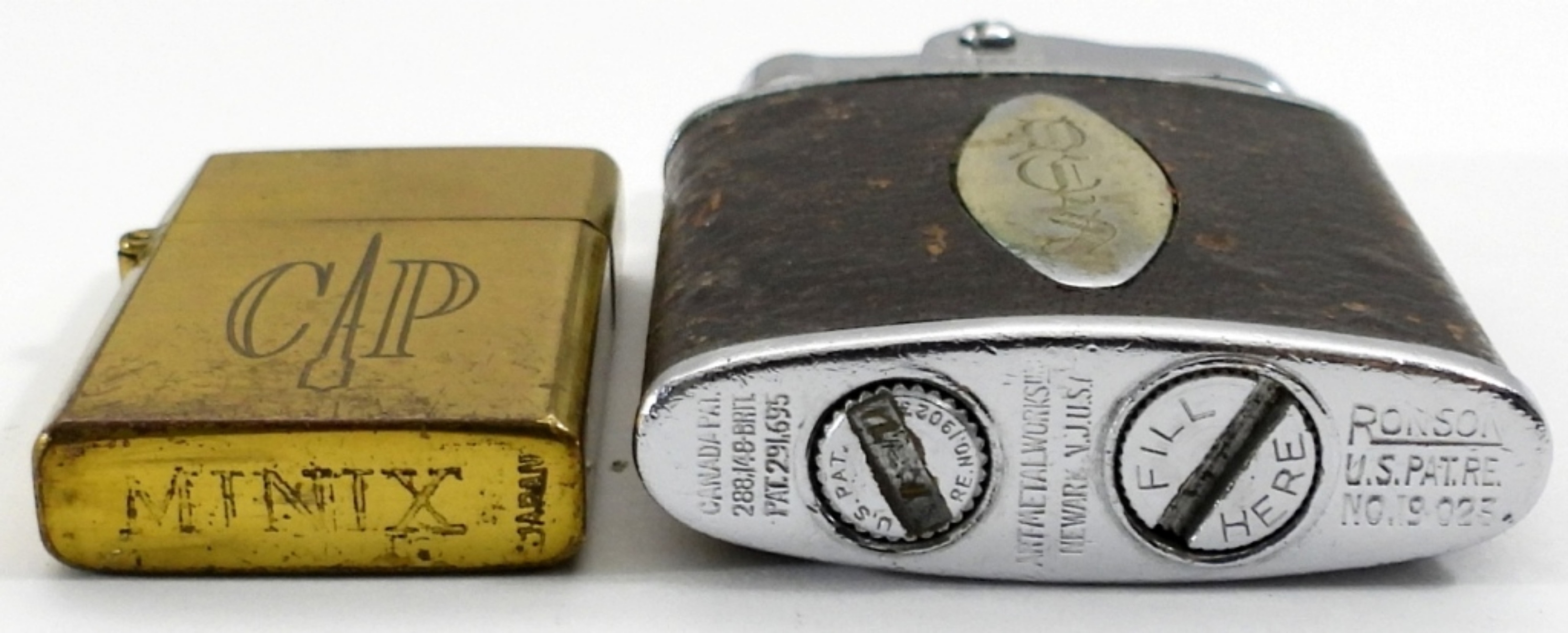 ALL DIFFERENT – MINIX MINI FLIP-TOP LIGHTER, RONSON ENGRAVED MINI LEATHER – USED CONDITION