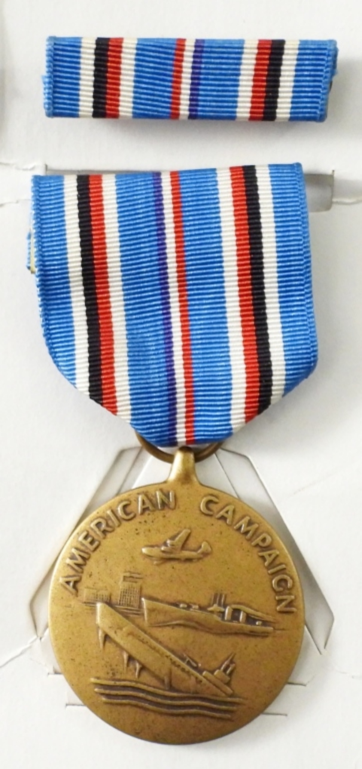 WWII U.S. NAVY AMERICAN THEATER CAMPAIGN MEDAL AND RIBBON BAR