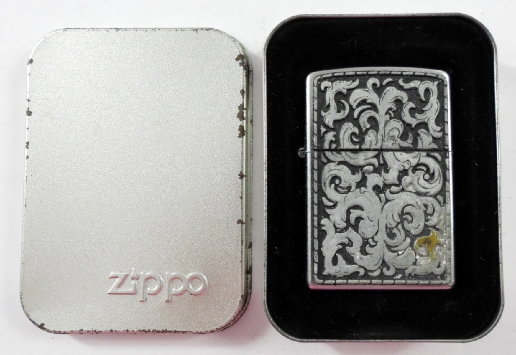 2003 SEALED MARLBORO STORMING SCROLL ZIPPO LIGHTER IN TIN