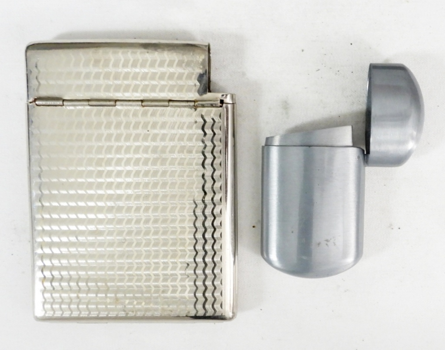 (1)JAPAN CIG HOLDER & (1) PORT. ASHTRAY, MADE IN OCCUPIED JAPAN CIGARETTE HOLDER SILVERTONE LIGHTER MISSING, PORTABLE ASHTRAY BRUSHED SILVERTONE