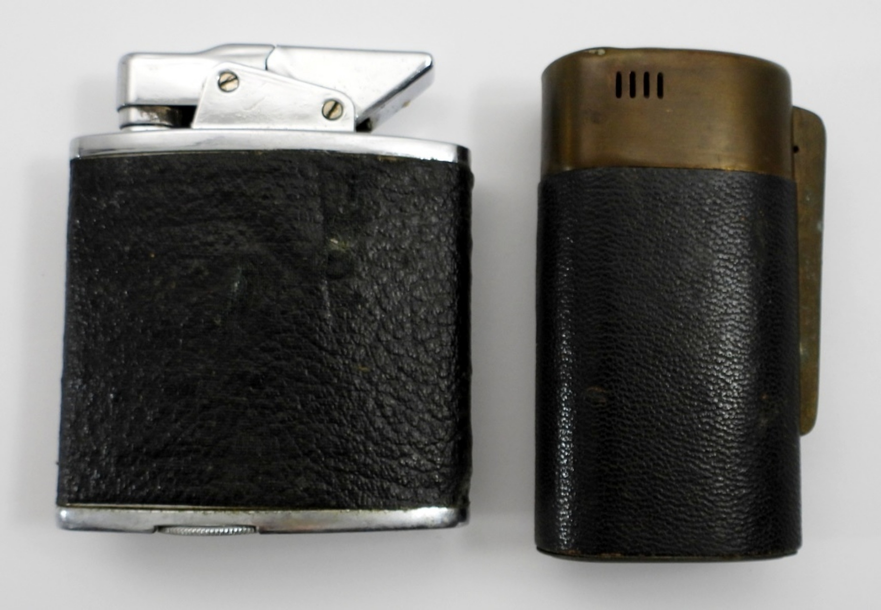 “THE GIANT” FLASK STYLE, BLACK LEATHER TABLE LIGHTERS – USED CONDITION