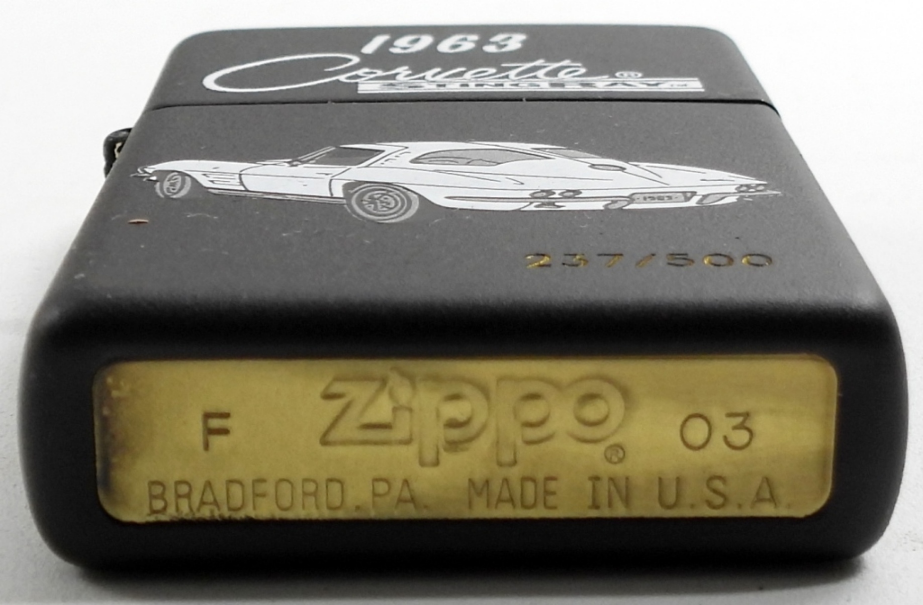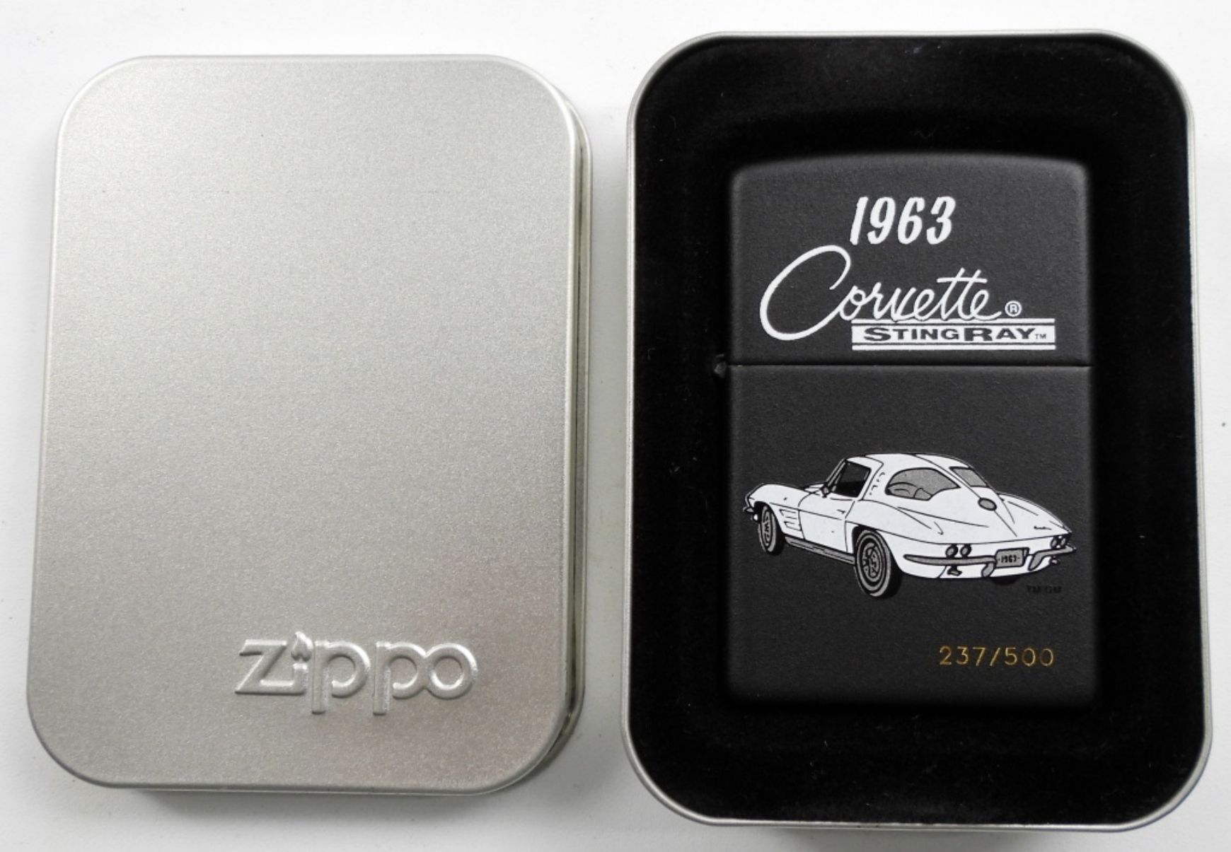 2003 SEALED /UNFIRED CORVETTE COUPE 1963 STING RAY ZIPPO IN ORIGINAL TIN AND SLEEVE (237/500)