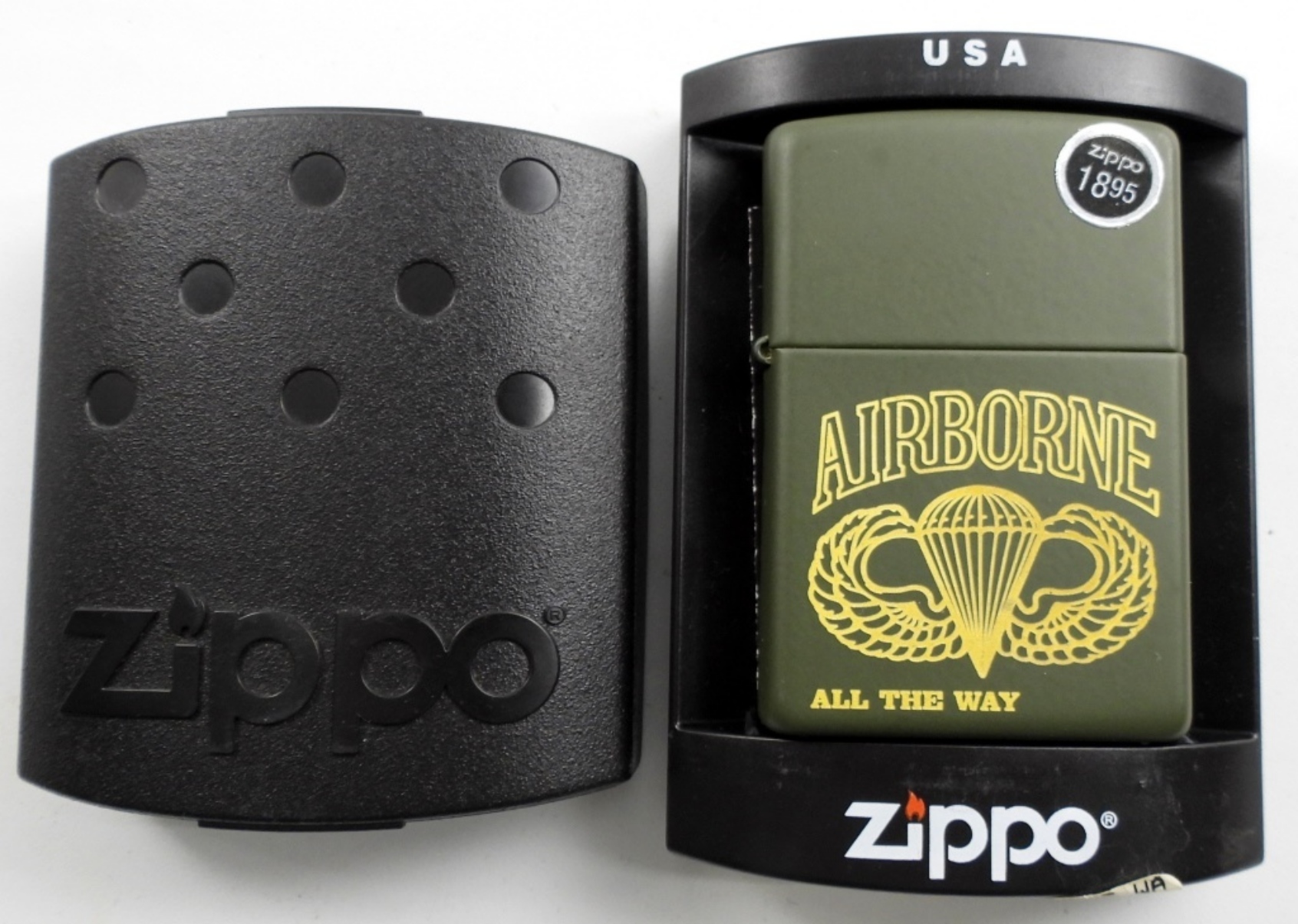 2004 SEALED/UNFIRED AIRBORN ALL THE WAY MATTE GREEN & GOLD ZIPPO IN CASE