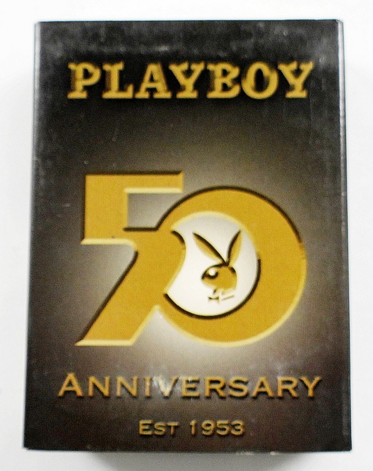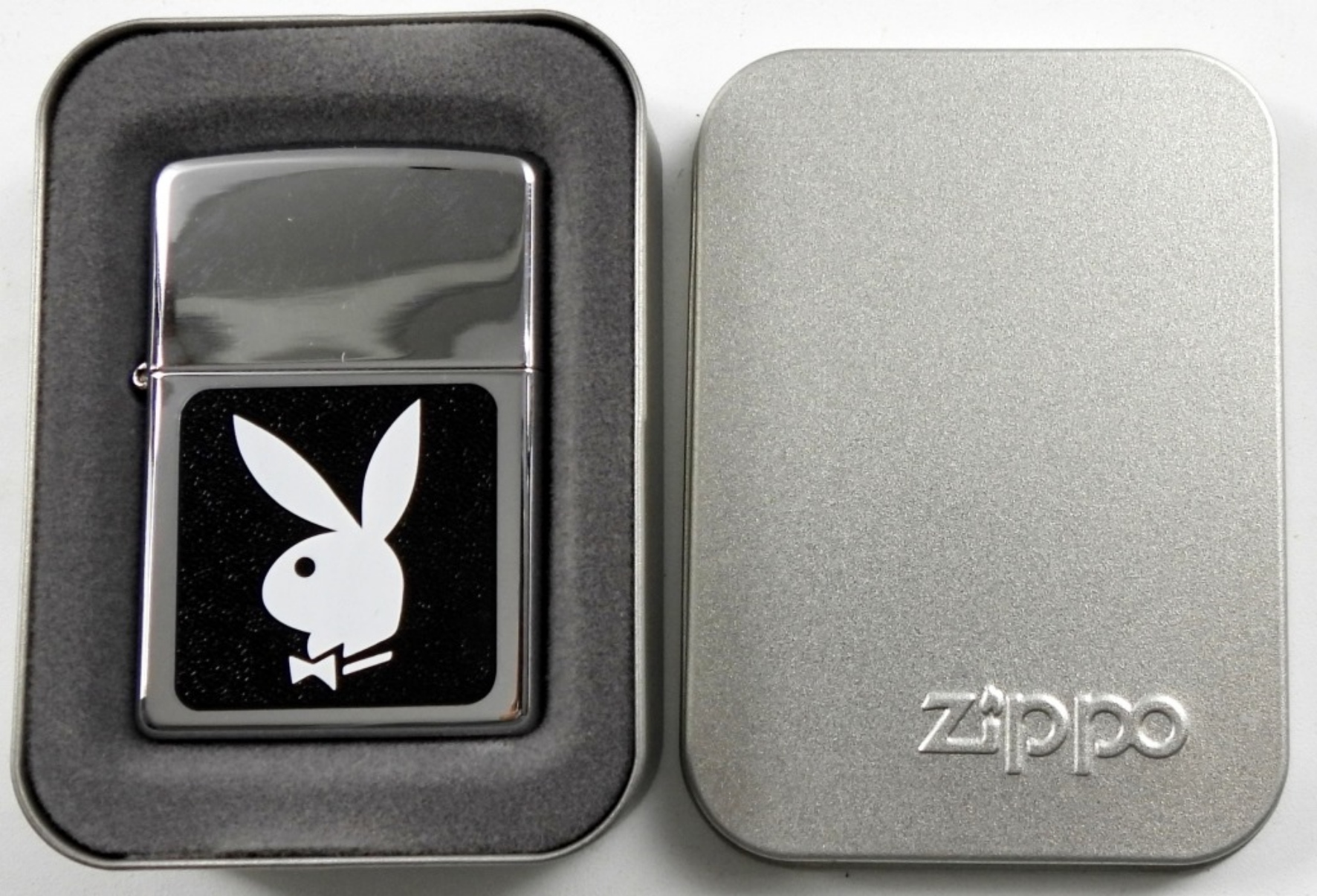 2004 SEALED/UNFIRED PLAYBOY 50TH ANNIVERSARY ZIPPO WITH A PLAYBOY BUNNY ON FRONT, IN ORIGINAL TIN AND SLEEVE