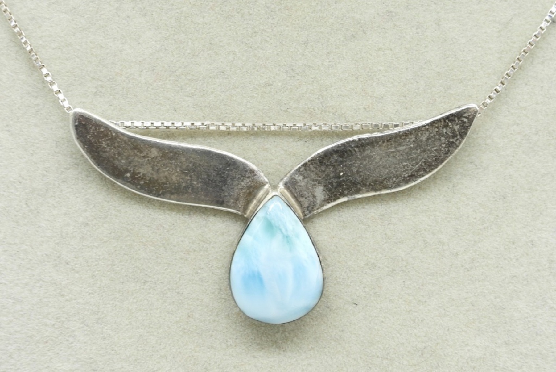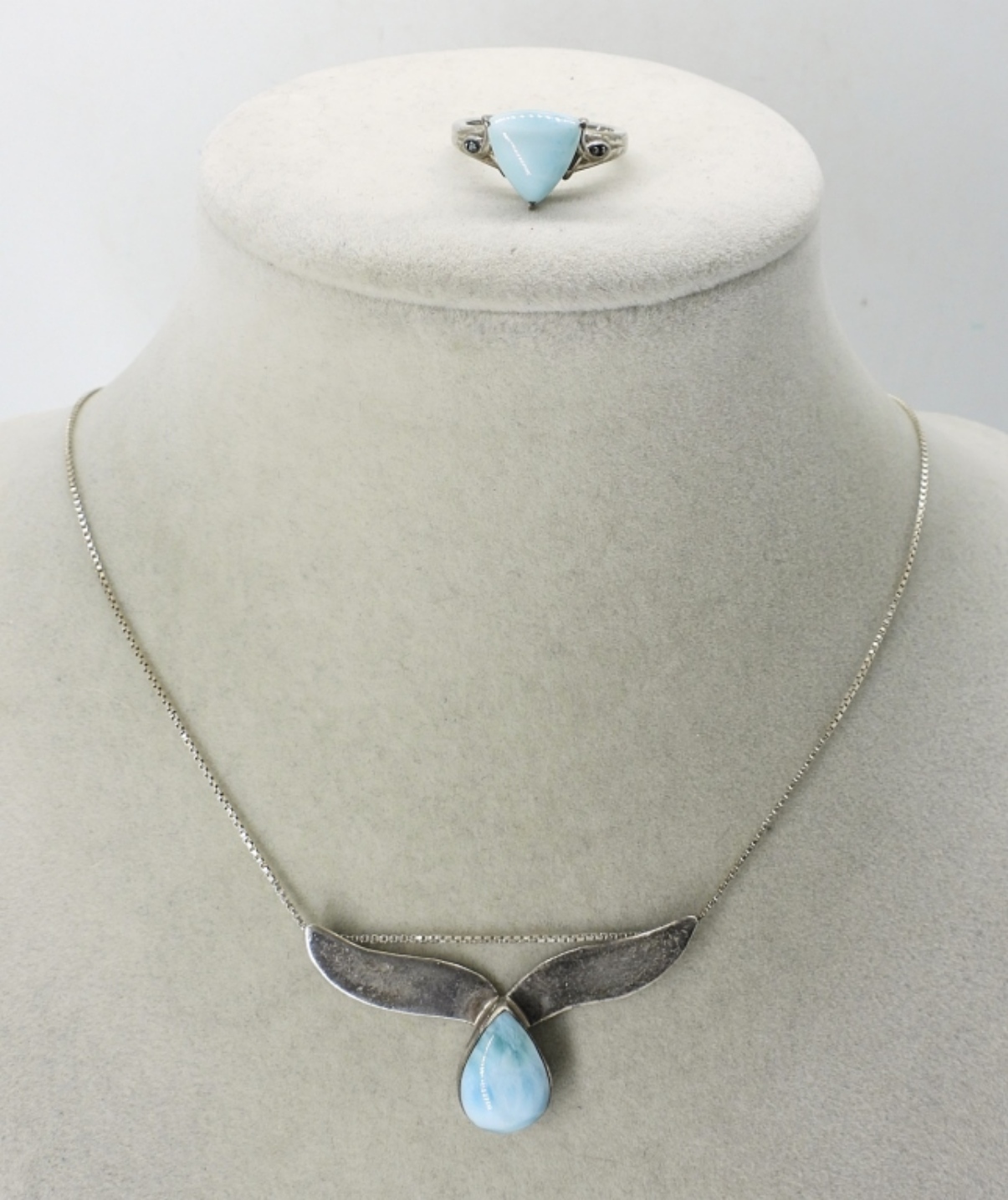 STERLING CHAIN 22″. LARIMAR GEMSTONE IN BOTH PIECES. VINTAGE. 6.2 DWT
