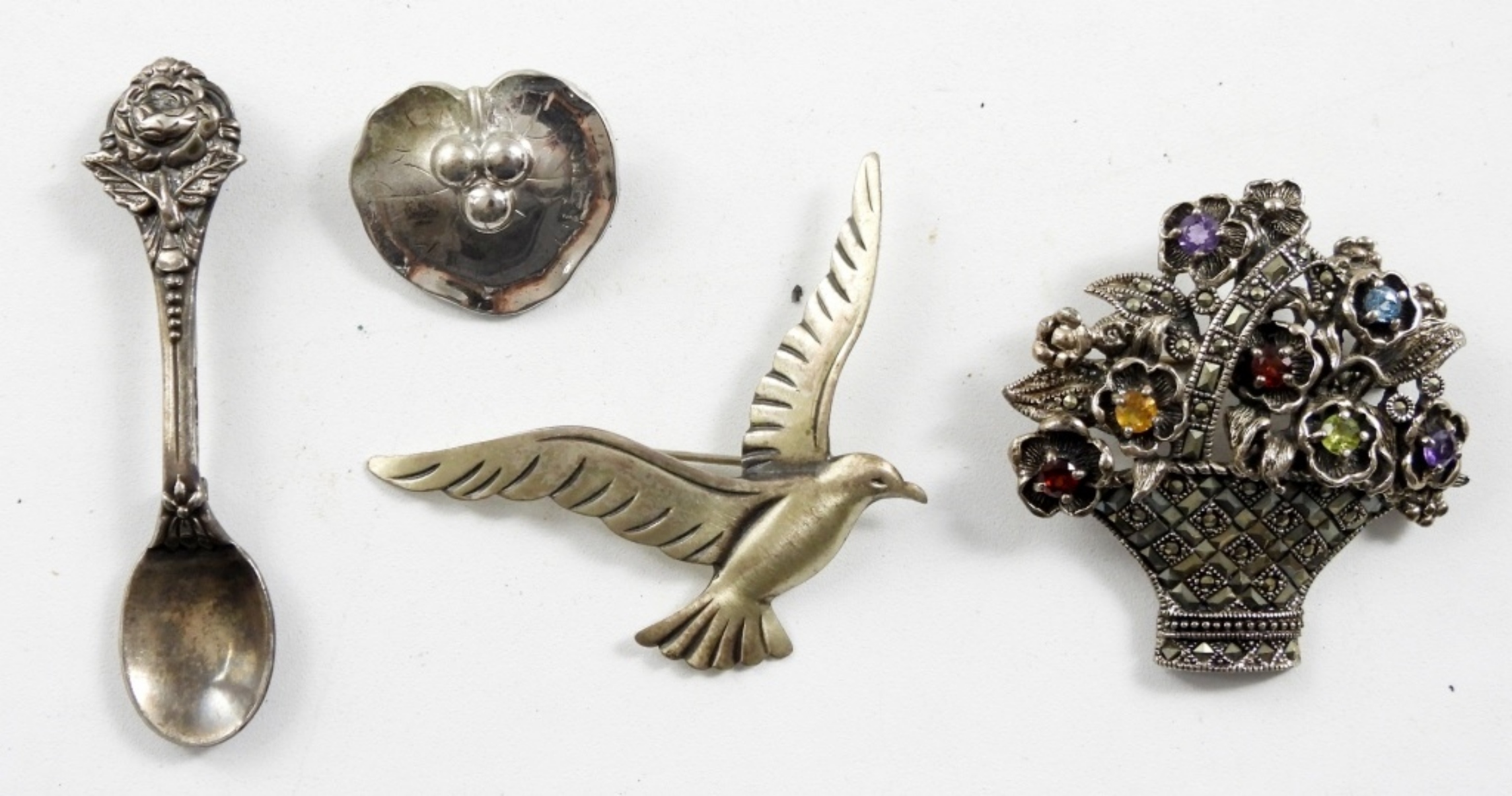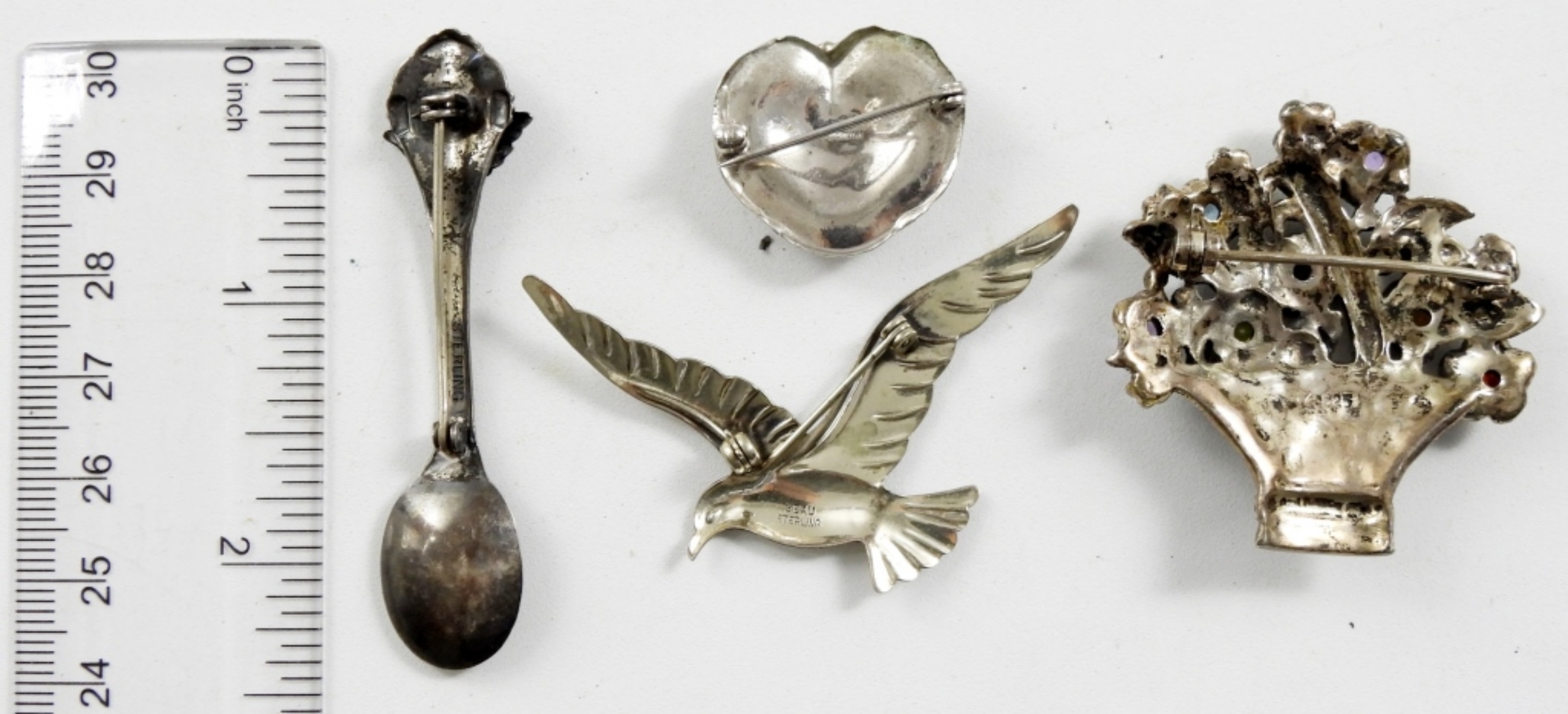 DOGWOOD, SPOON & DOVE STERLING PINS (19 DWT)