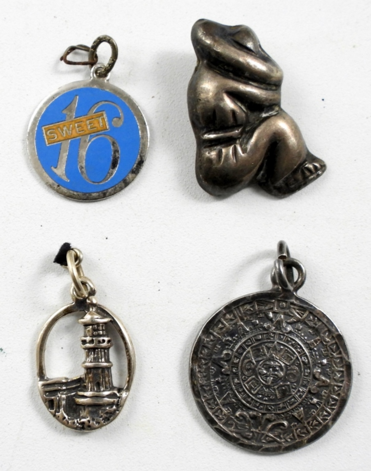 AZTEC CALENDAR, SWEET 16, SMALL TINY FUNNEL & SLEEPING SOMBARO BUTTON (13 DWT)
