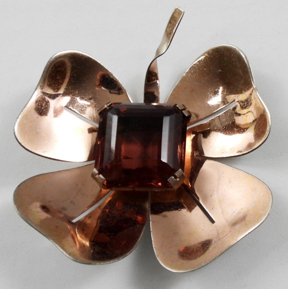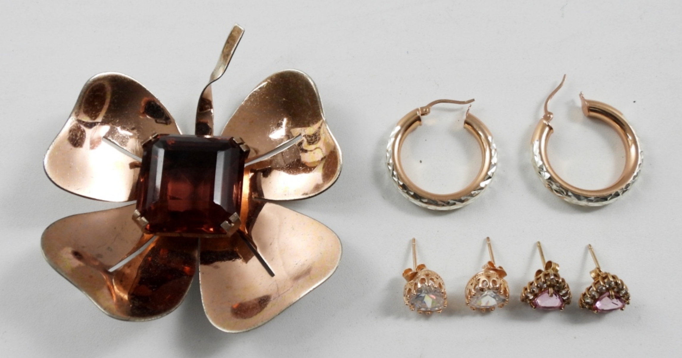 LARGE DOGWOOD FLOWER w/CENTER STONE & (3) PAIR PIERCED EARRINGS (27 DWT)