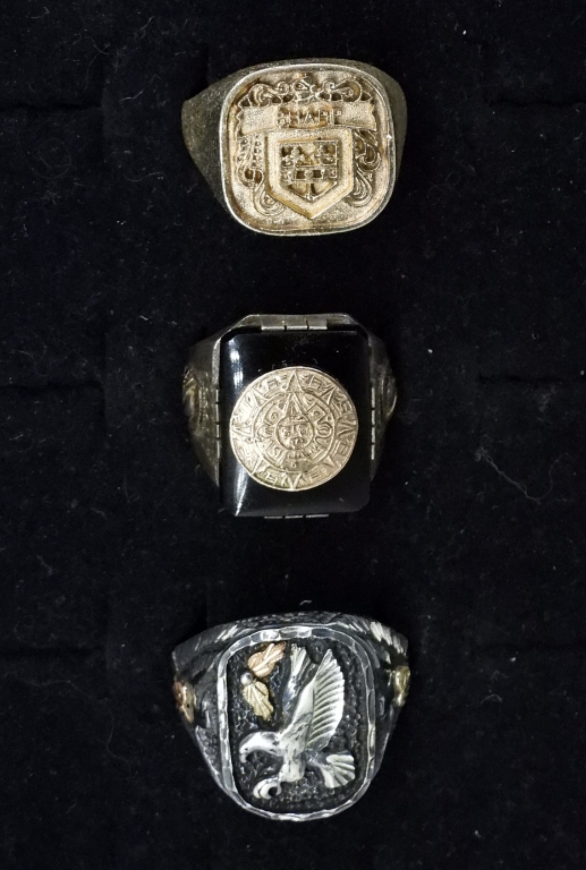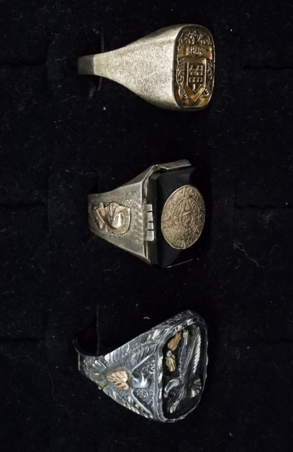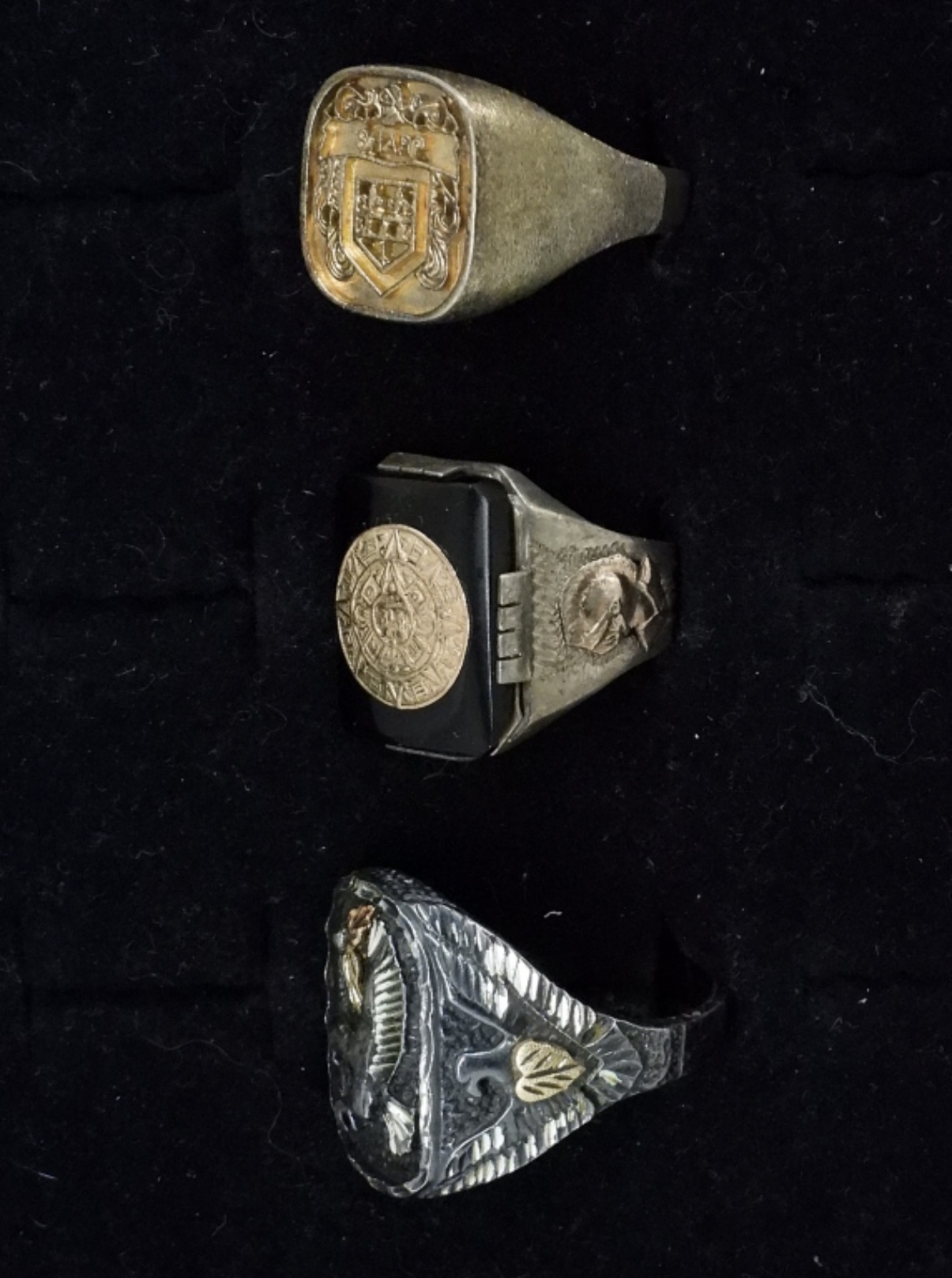 THREE MEN’S STERLING RINGS. SIZES 9, 11, 13.5. SOME TARNISHING. 25.6 DWT