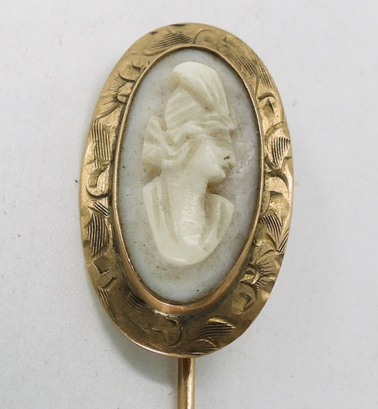 VINTAGE 10K ROSE GOLD CAMEO STICK PIN, NO CAP ON THE END. 3″ LONG. VERY ELEGANT! 1.1 DWT