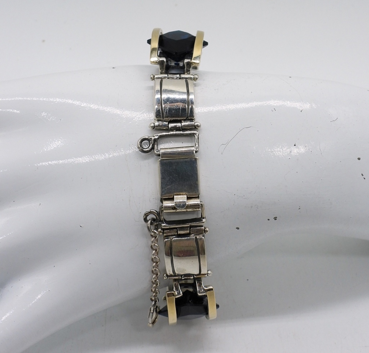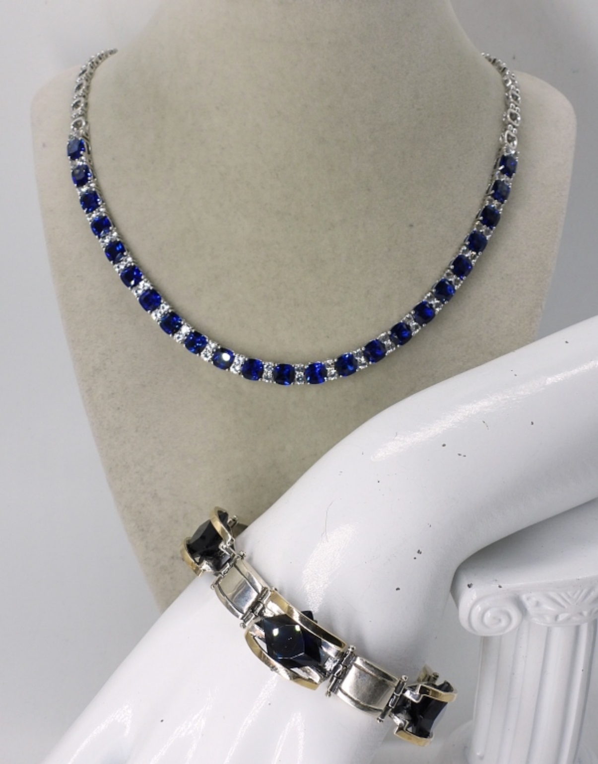STERLING NECKLACE WITH BLUE & WHITE LAB CREATED SAPPHIRES, 19″. SAPPHIRE COLORED GEMSTONE BRACELET, 7″ LONG. 40.3 DWT