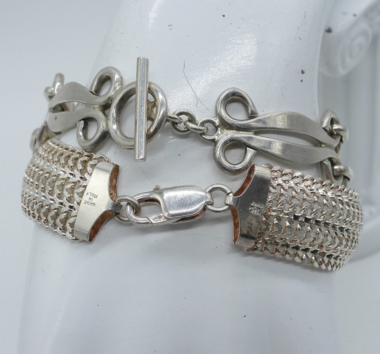 ONE MILOR MESH STERLING BRACELET, 7.5″. ONE “MEXICO 925″ TOGGLE CLASP BRACELET, 7.5”. 30.8 DWT