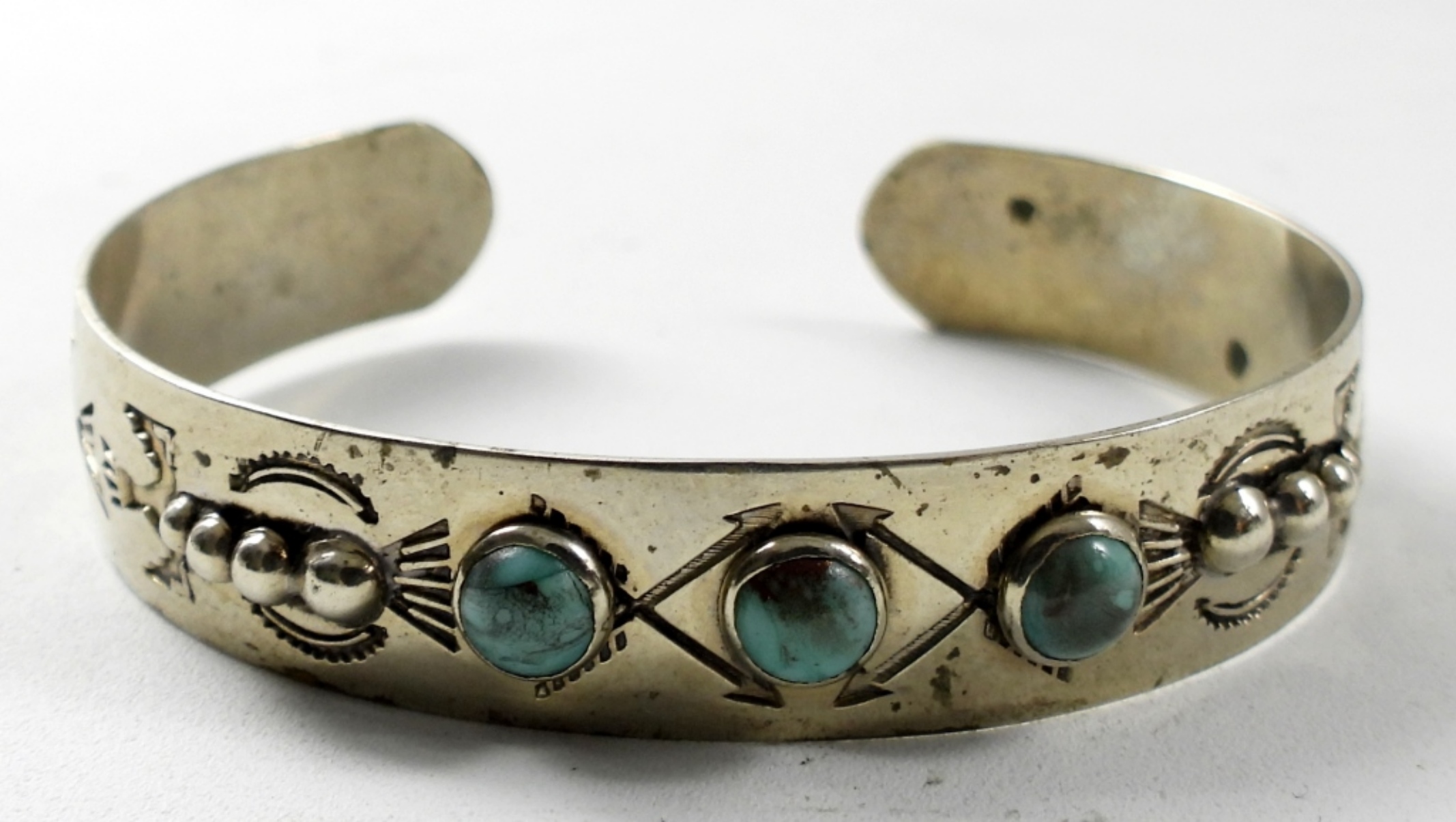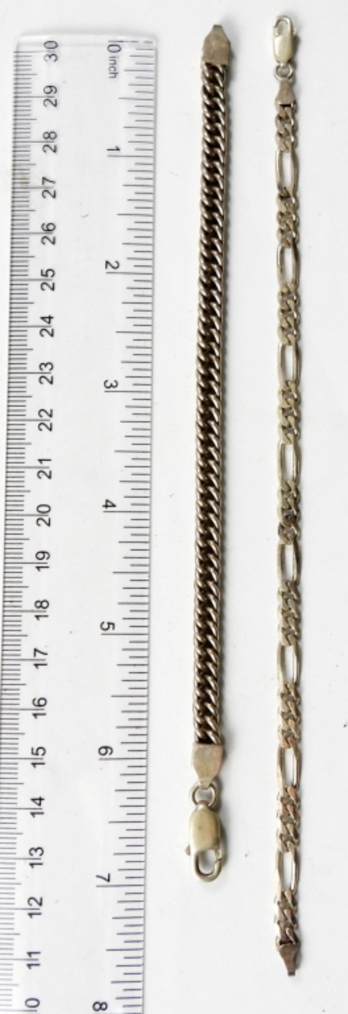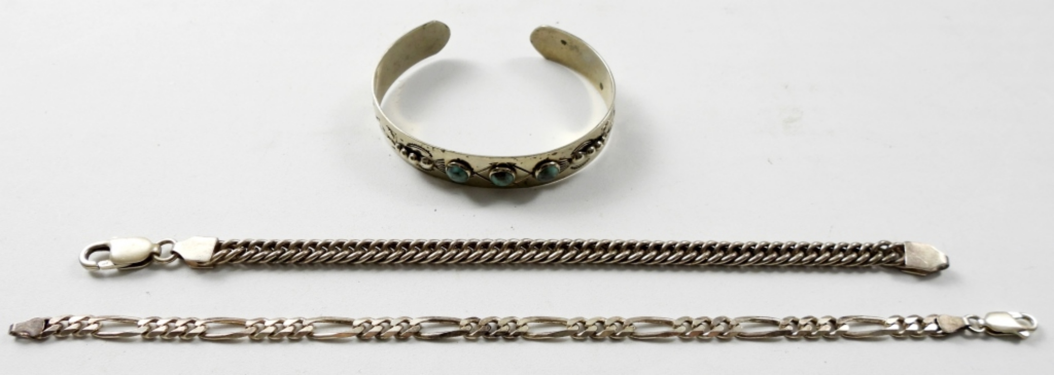 3 LADIES STERLING BRACELETS SIZE 6-8″ AND A CUFF BRACELET WITH BLUE GEMSTONES (19.6 DWT)
