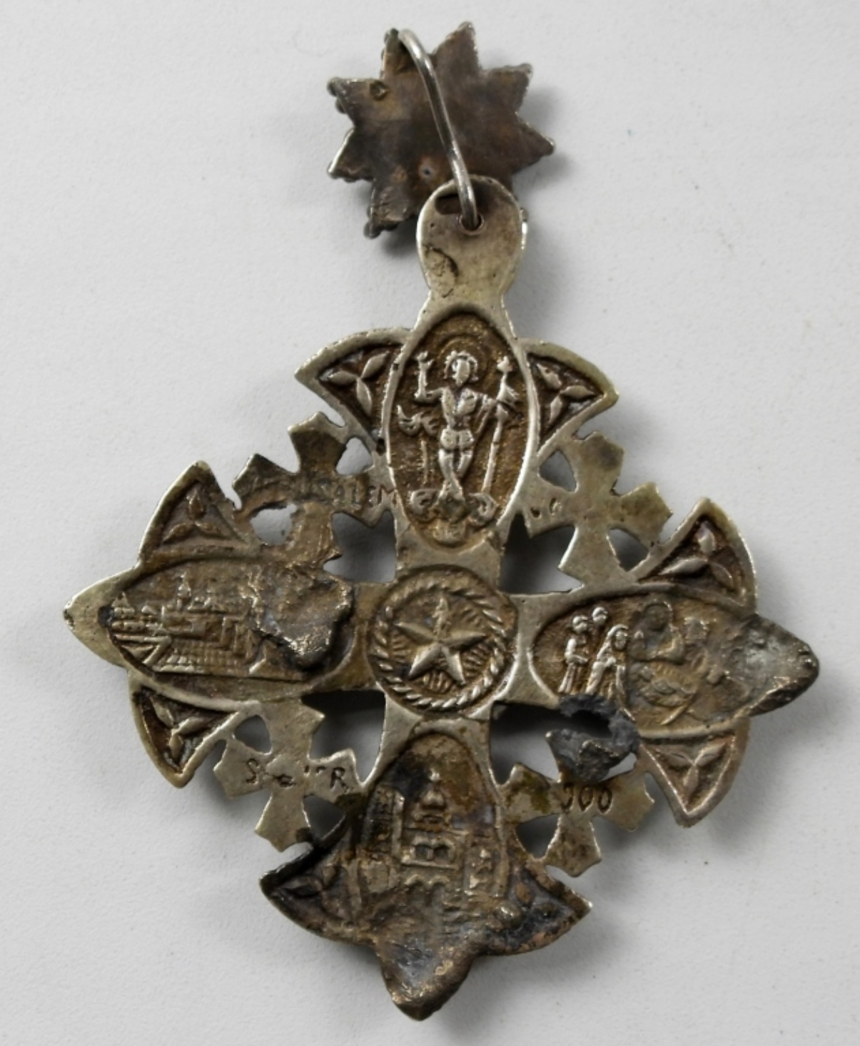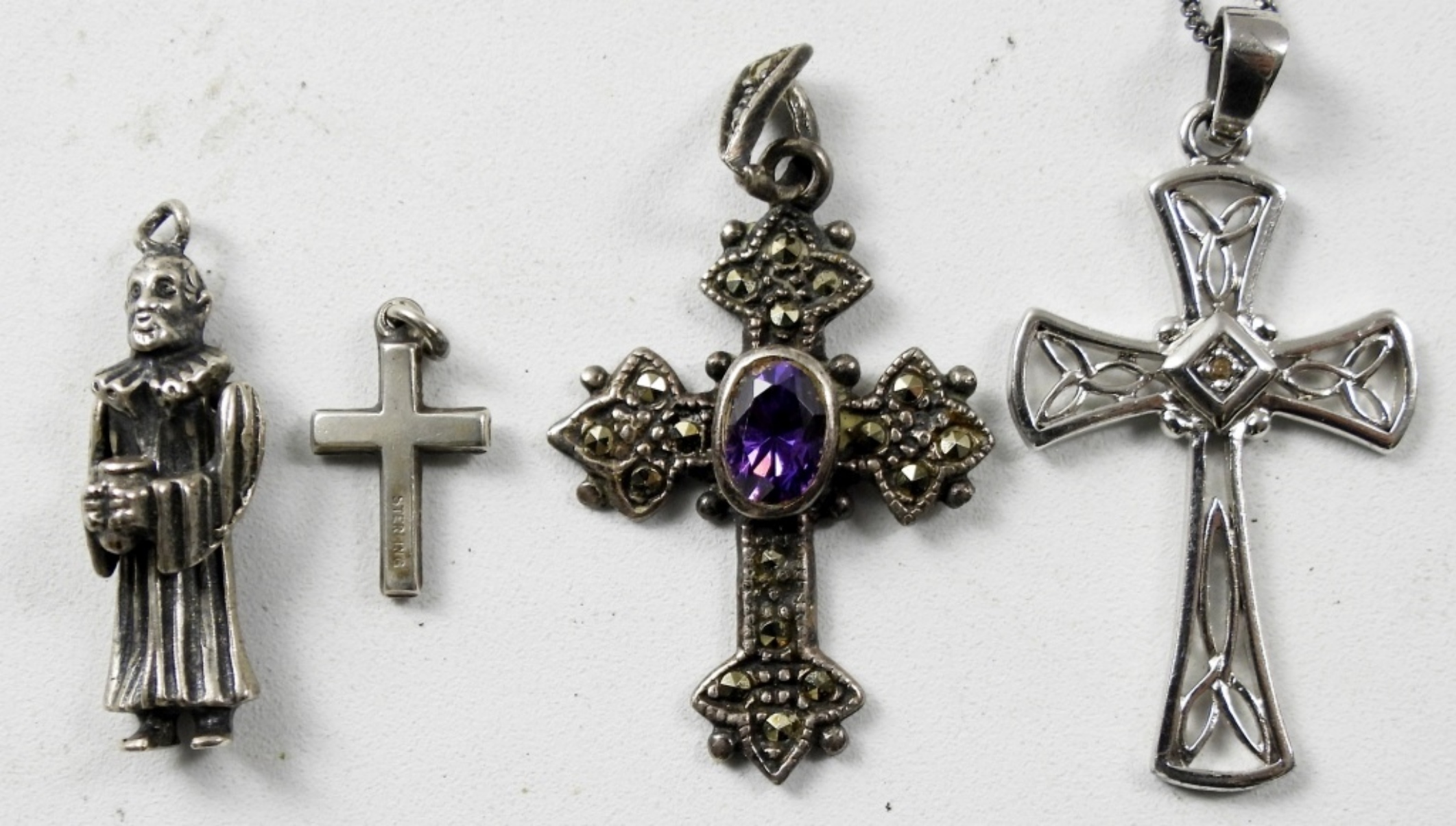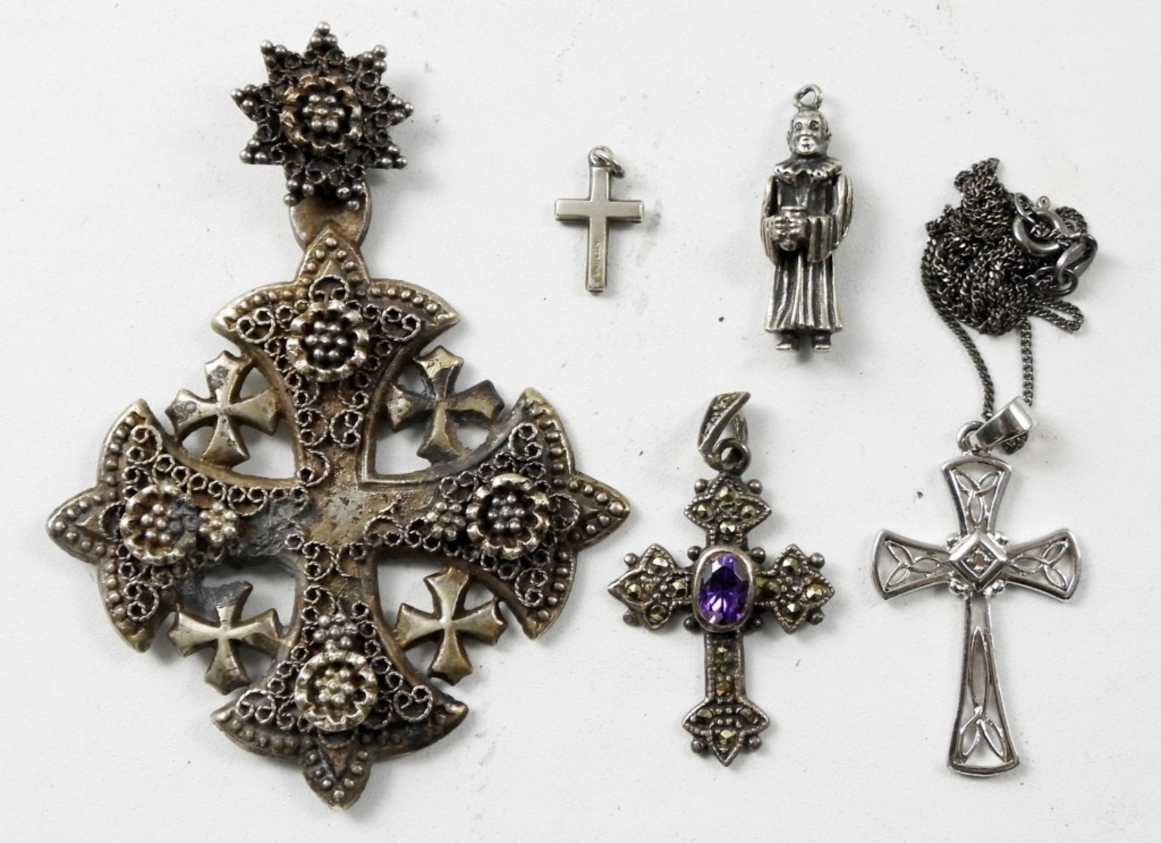20″ NECKLACE WITH 925 CROSS PENDANT AND 4 OTHER RELIGIOUS PENDANTS (21.5 DWT)