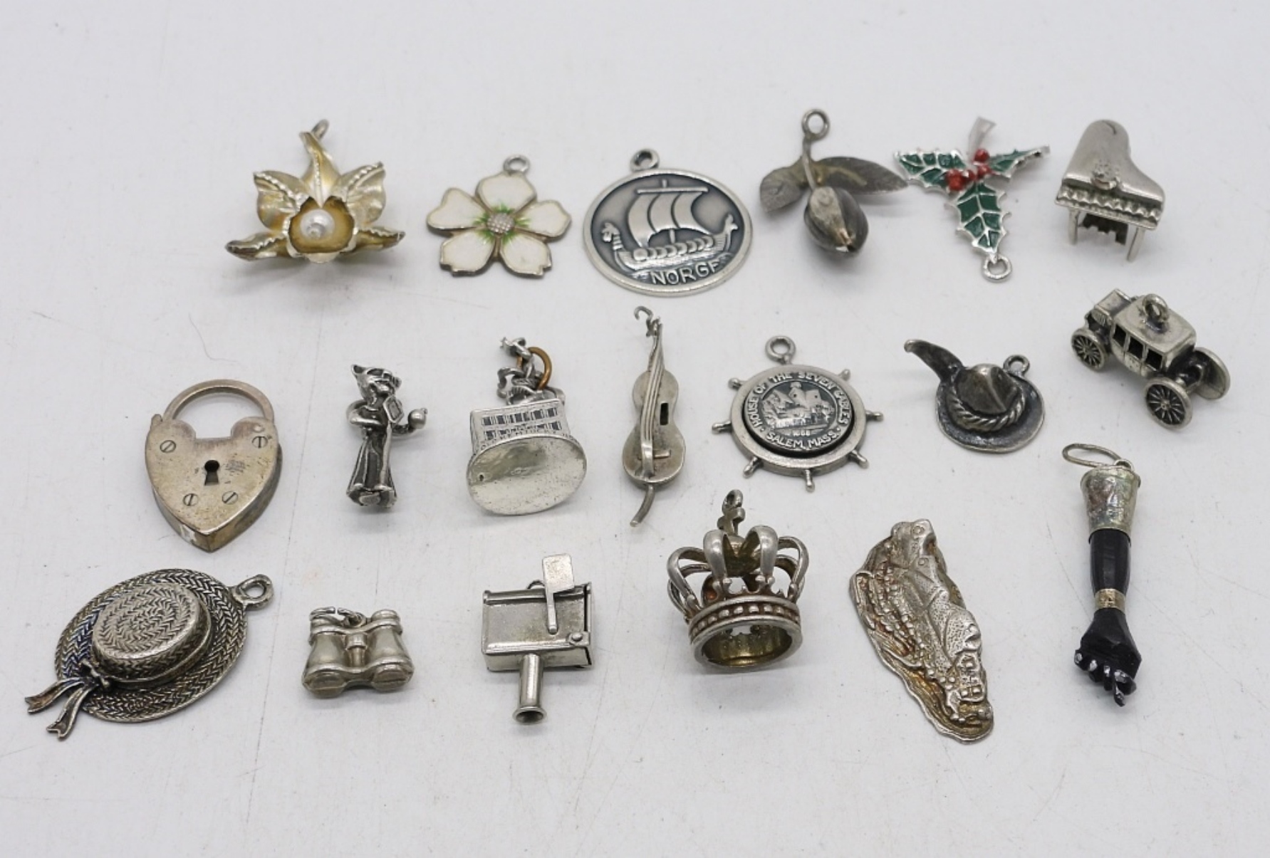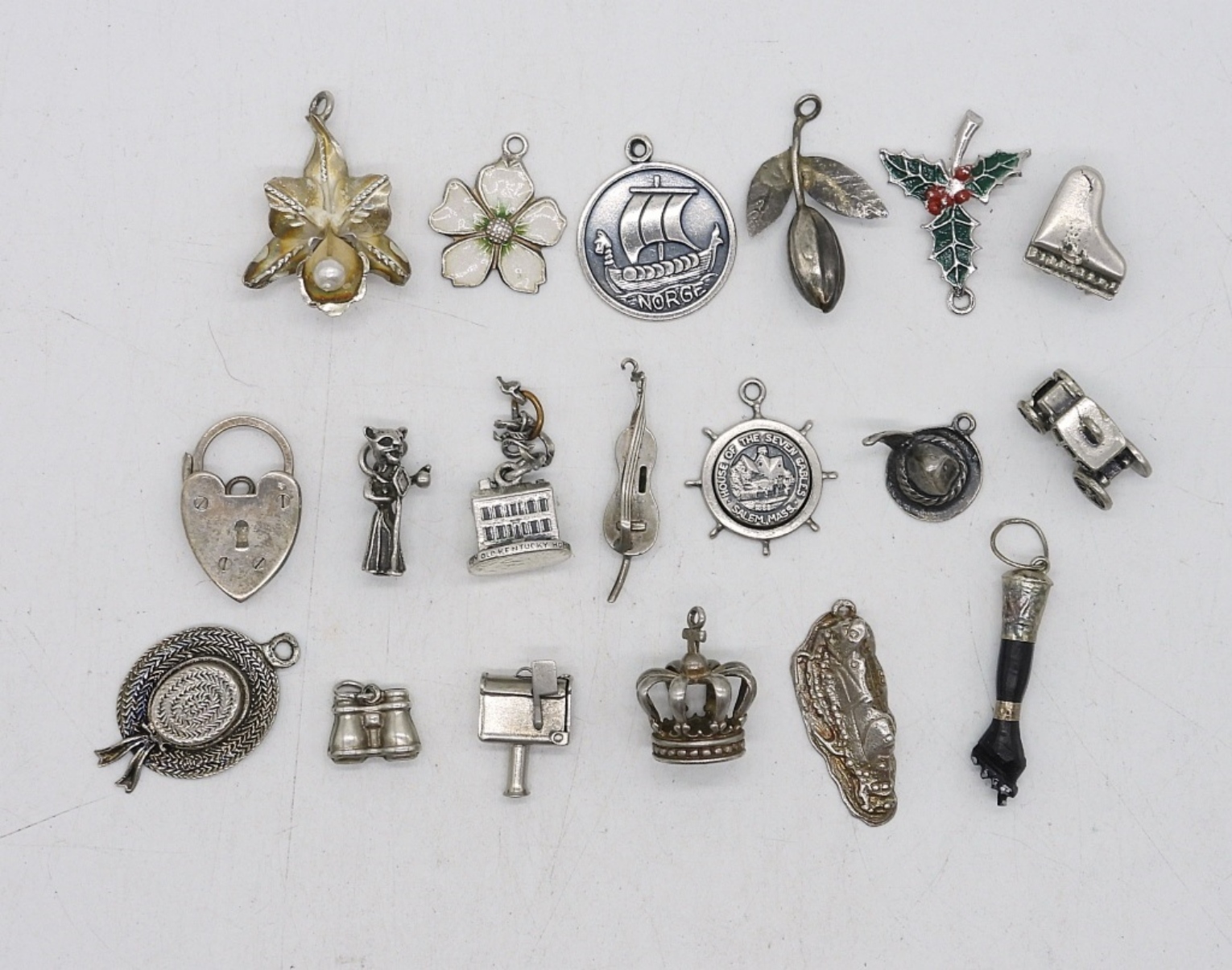 NINETEEN VINTAGE STERLING CHARMS. 27 DWT