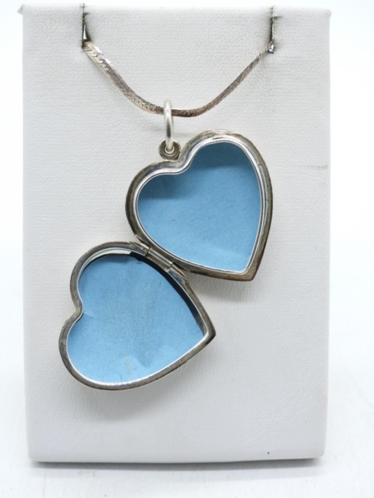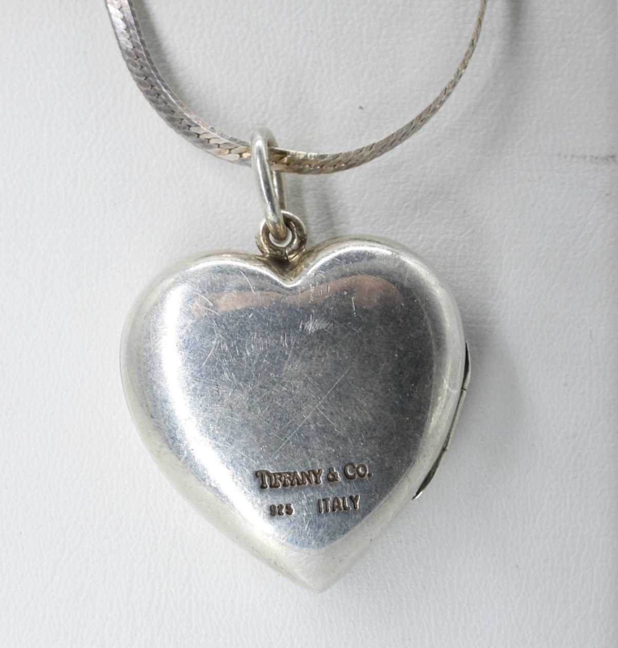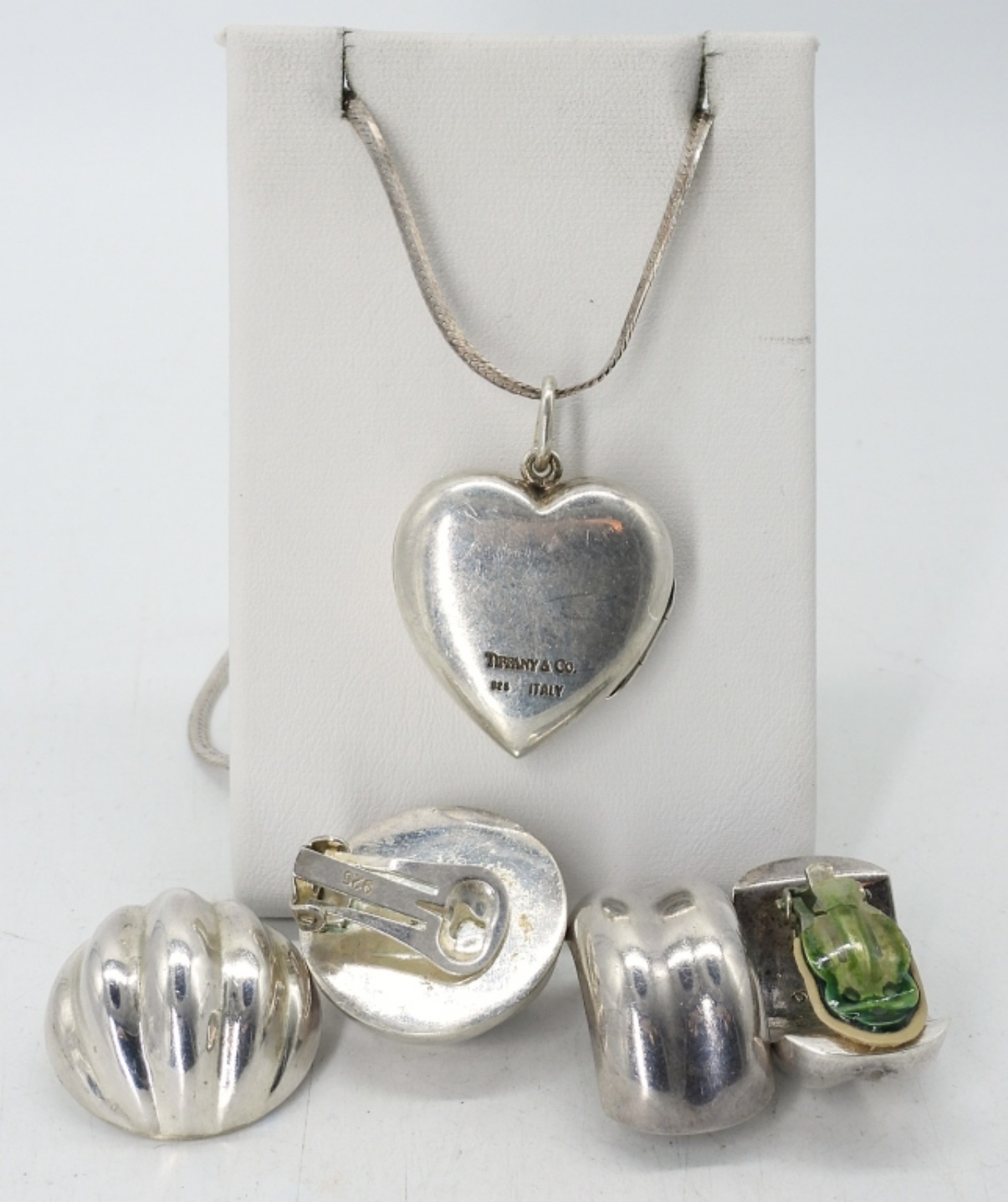TIFFANY & CO STERLING HEART LOCKET ON A 16″ CHAIN. TWO PAIR OF CLIP ON VINTAGE EARRINGS. 27.9 DWT