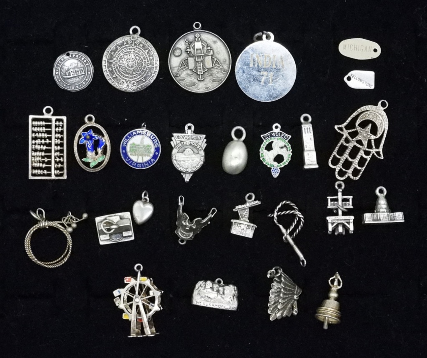TWENTY FIVE STERLING SILVER VINTAGE CHARMS. 34.8 DWT