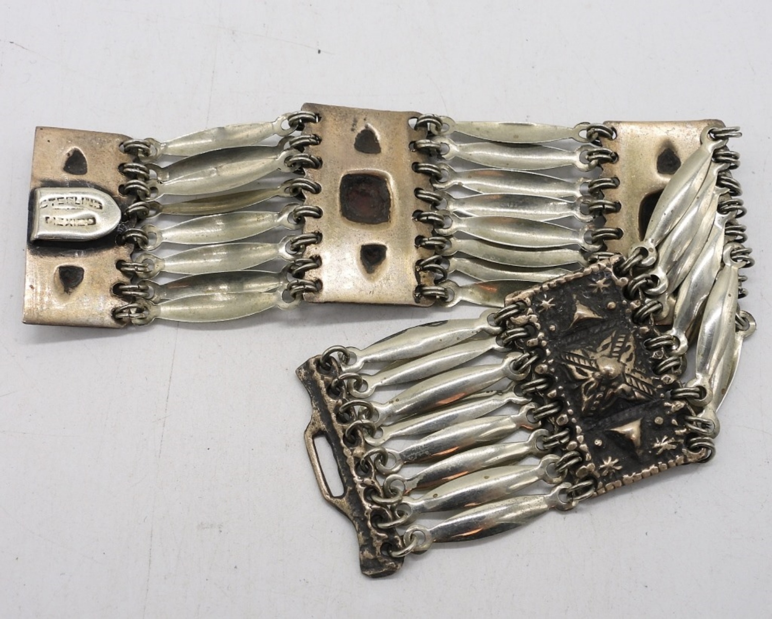 UNIQUE “MEXICO STERLING” BRACELET. 7″. 23.1 DWT