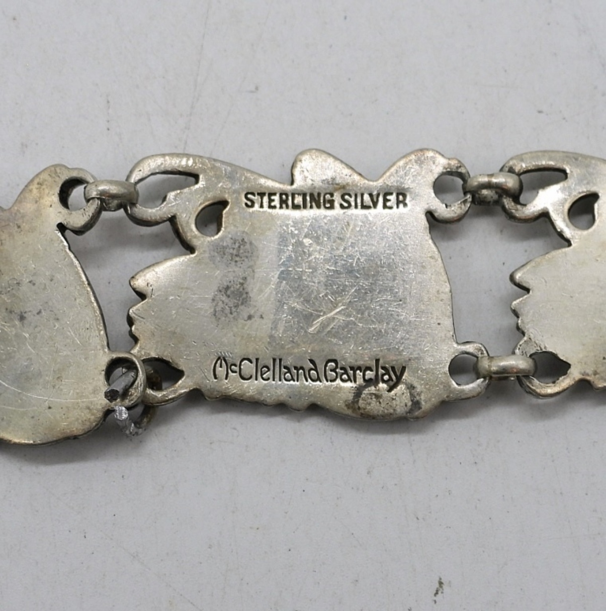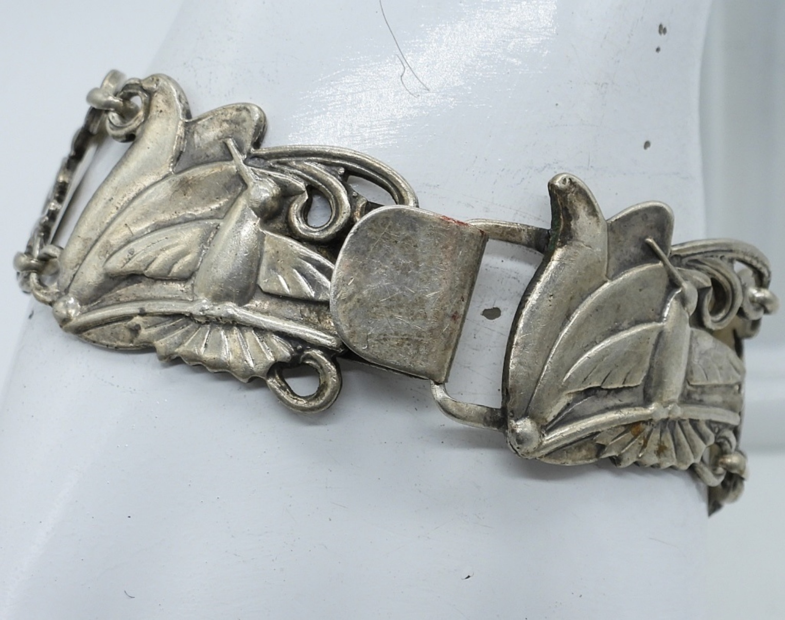 ANTIQUE McCLELLAND BARCLAY HUMMINGBIRD STERLING SILVER BRACELET, LOOKS TO HAVE HAD MINOR REPAIRS DONE. 7″ LONG. 25.6 DWT