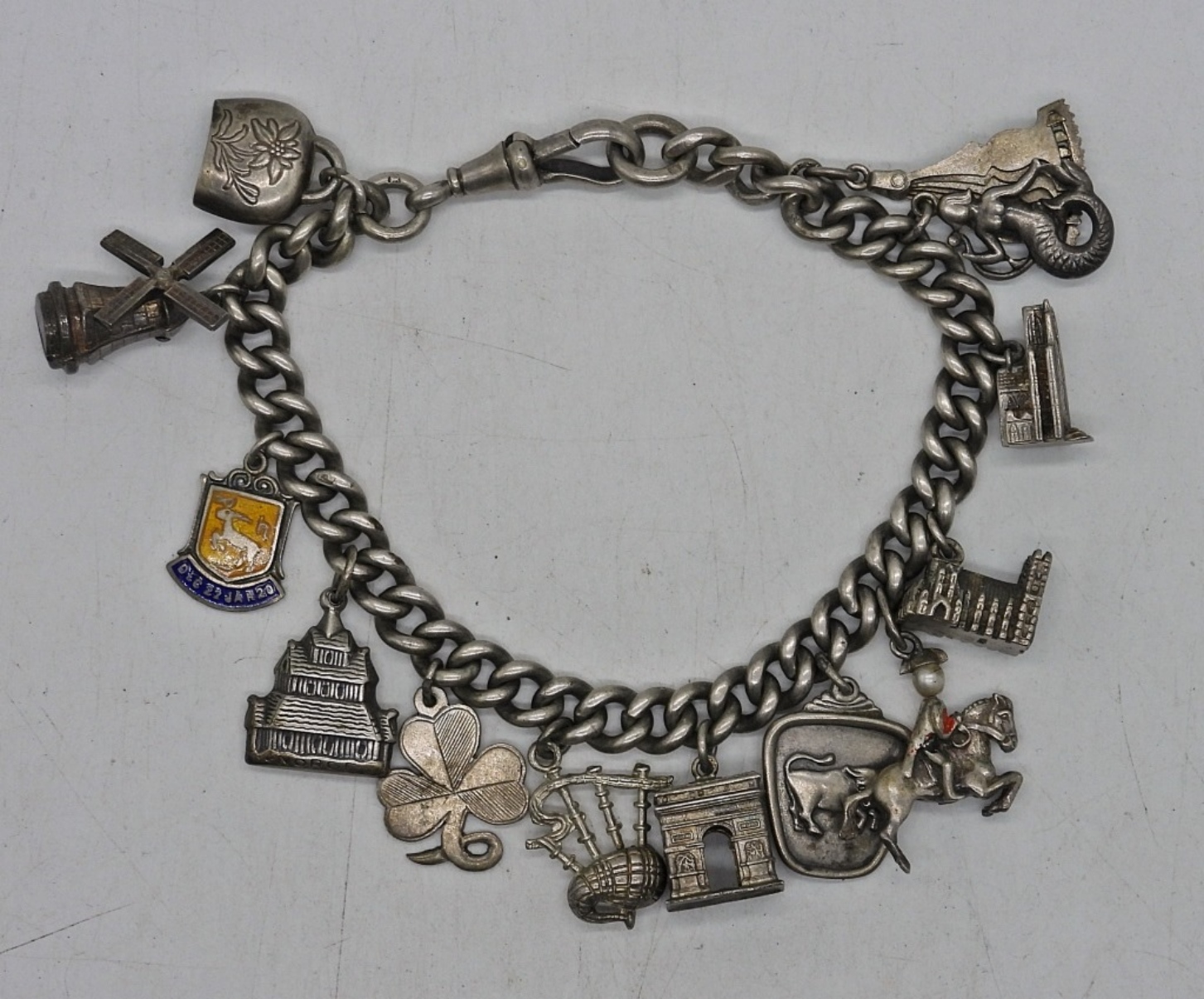 VINTAGE CHARM BRACELET WITH 12 CHARMS. 36.3 DWT