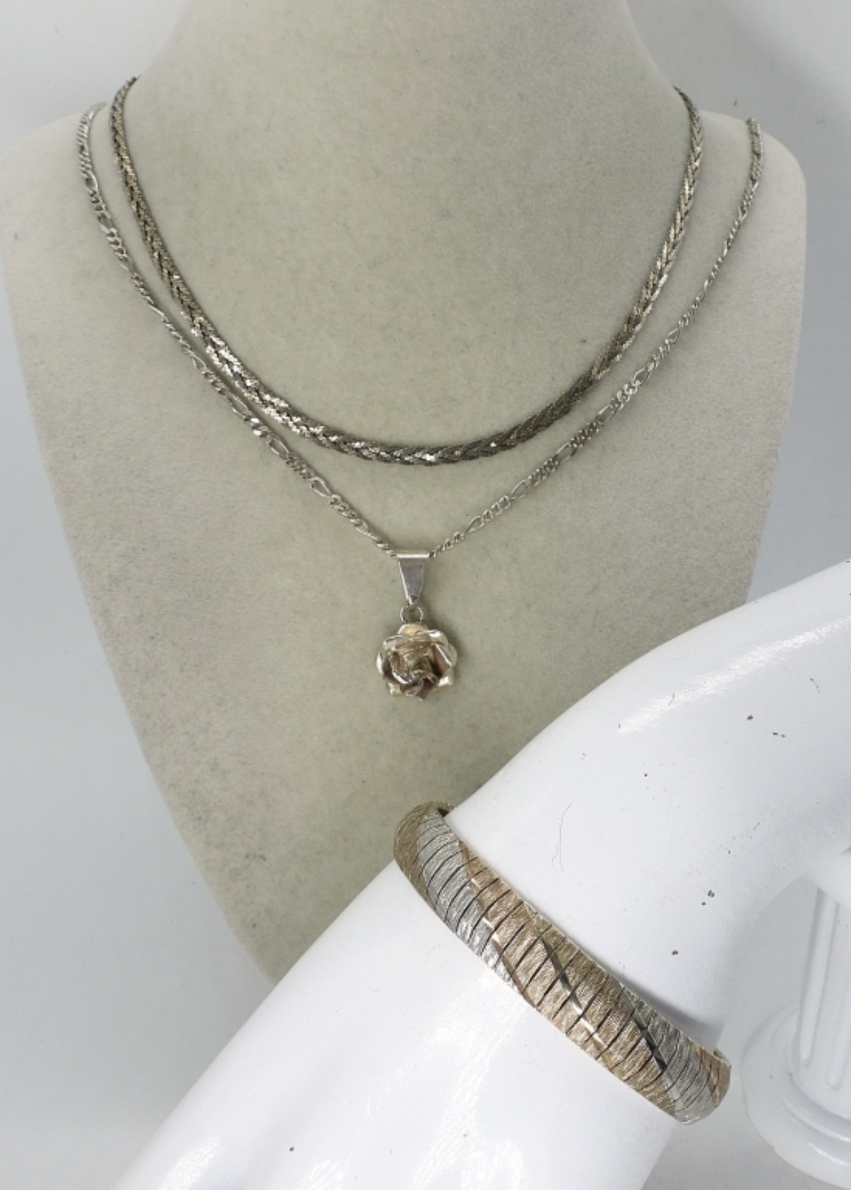TWO PRETTY STERLING NECKLACES, 15″ & 20″. BRACELET 7″. 26.1 DWT