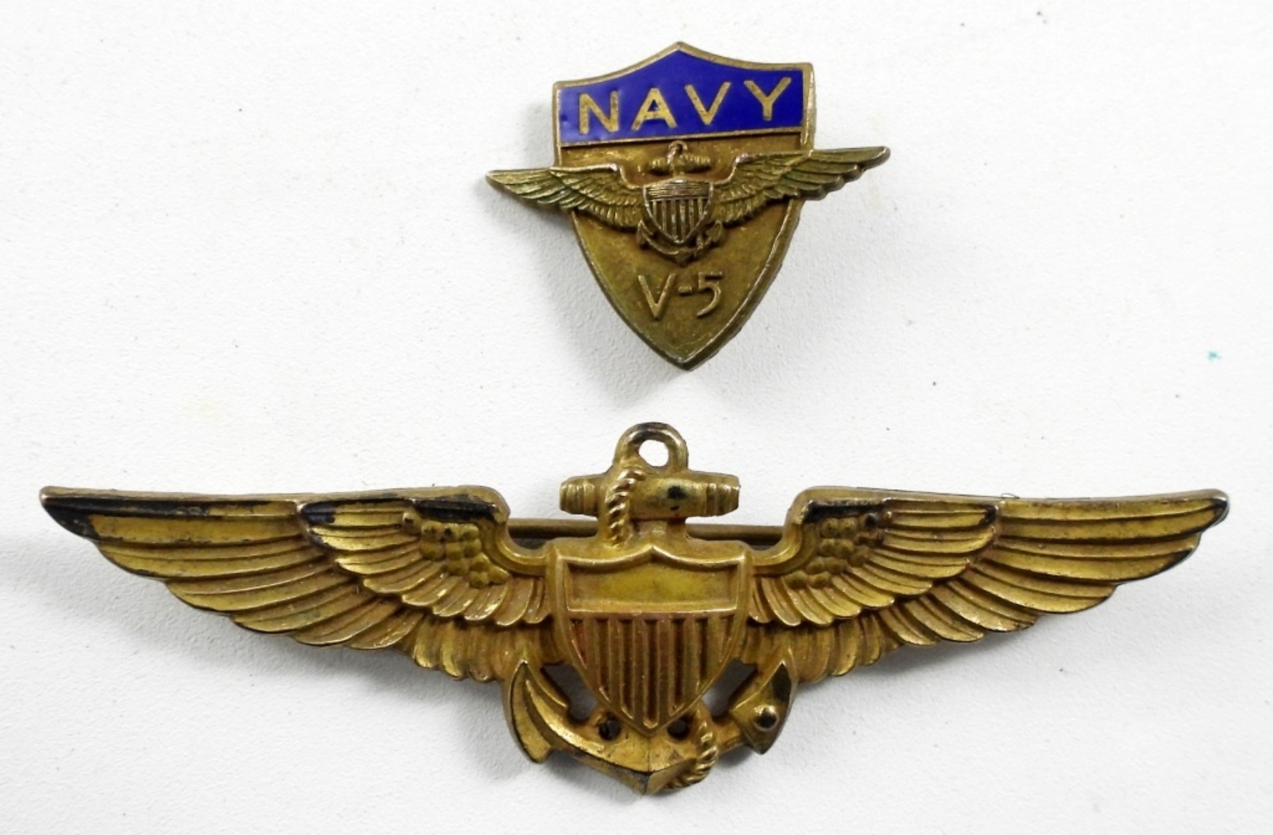 NAVY V-5 AVIATION PIN & PILOTS WINGS (11 DWT)