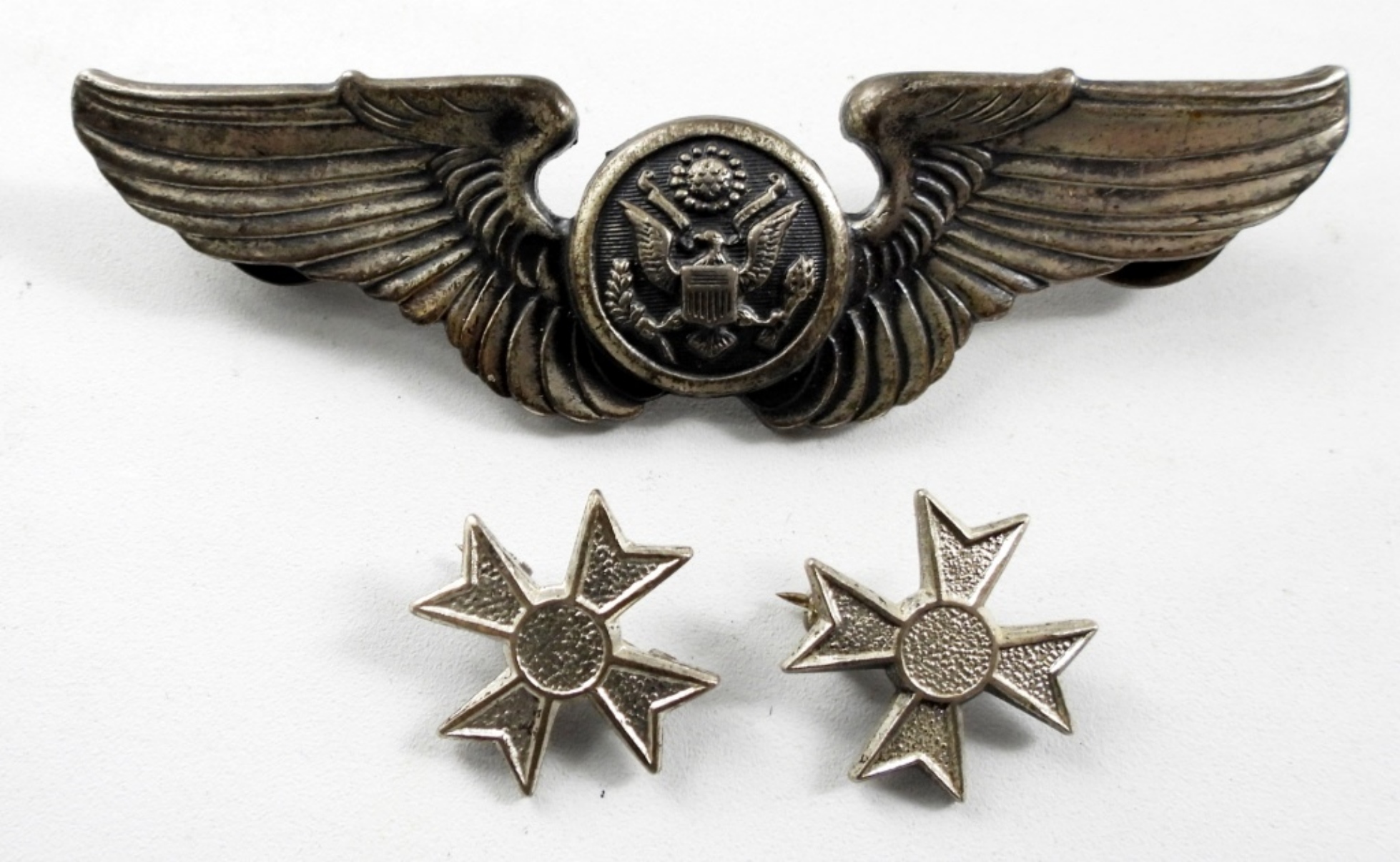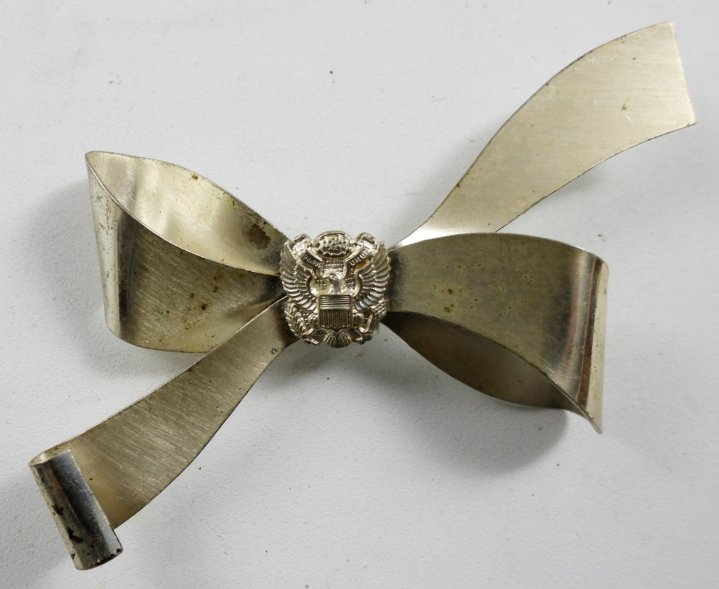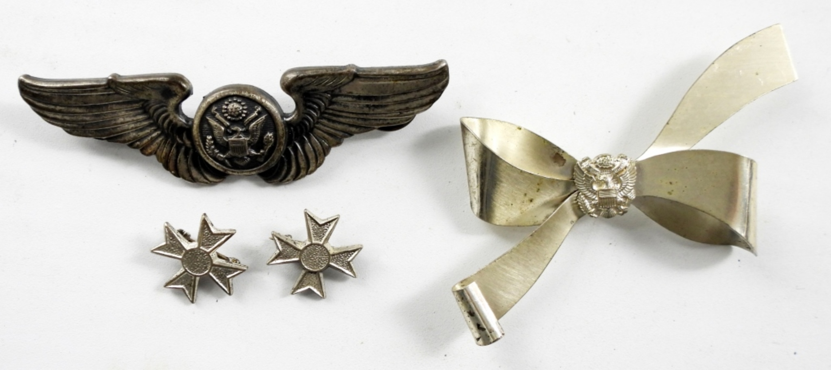 TRUART STERLING LADIES MILITARY BOW, (2) SMALL IRON CROSS PINS & AVIATION WINGS PIN (23 DWT)