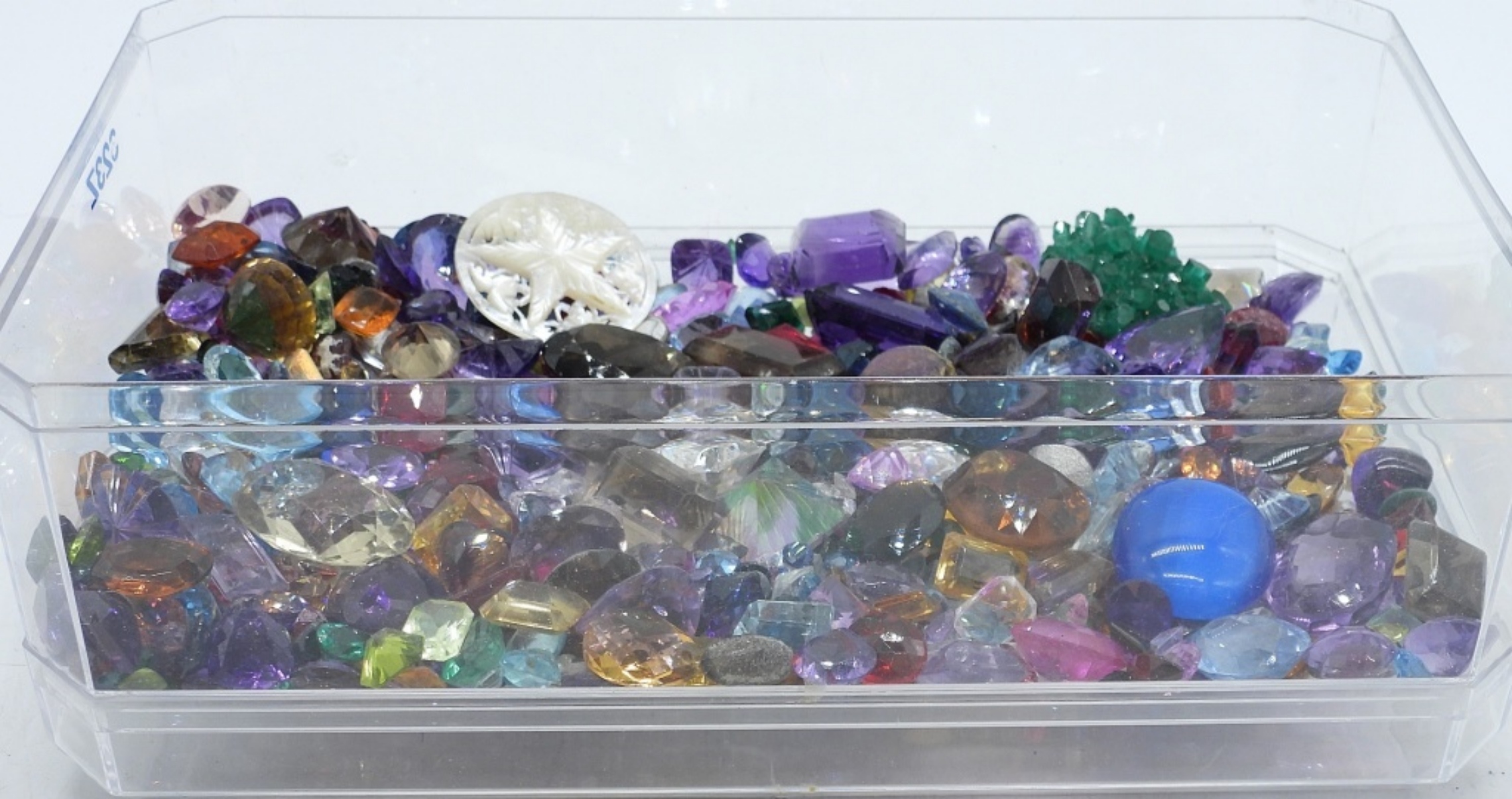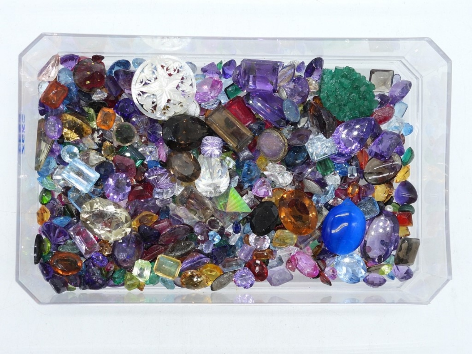 ONE POUND BAG OF LOOSE GEMSTONES. THESE HAVE BEEN EXTRACTED FROM BROKEN JEWELRY. ALL SIZES, ALL SHAPES. GENUINE, MAN MADE, PLASTIC. ONE POUND BAG.