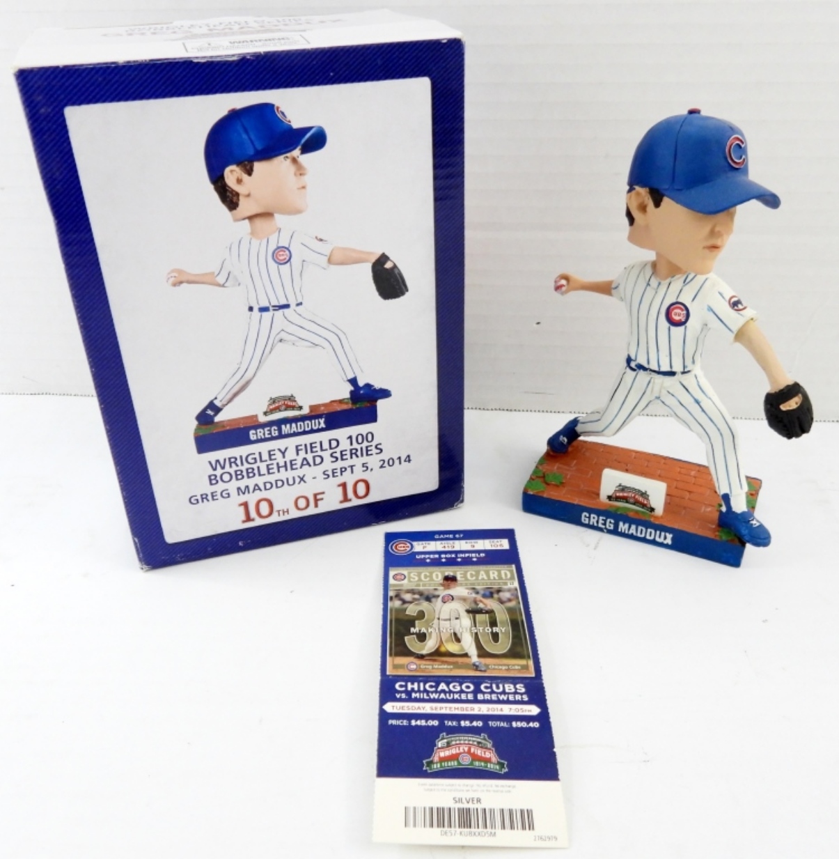 WRIGLEY FIELD 100 BOBBLEHEAD SERIES, 10TH OF 10. GREG MADDUX IN BOX!
