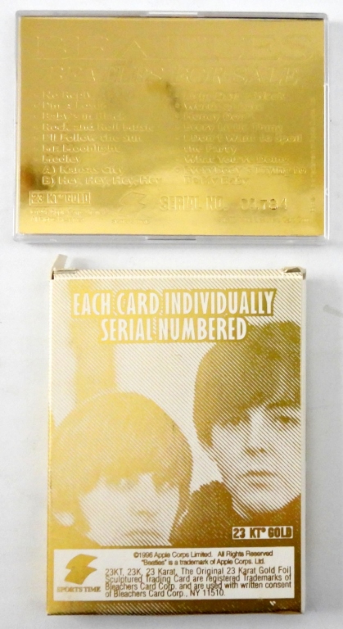 1996 “BEATLES FOR SALE” 23 KT GOLD FOIL SCULPTURED TRADING CARD. SERIAL NO 01784