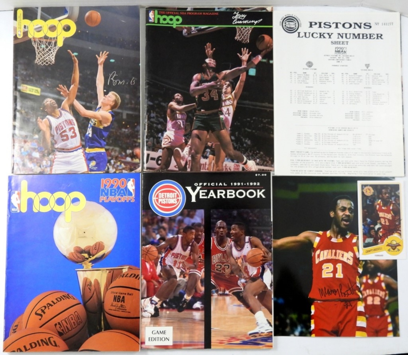 1990 SHEETS & 1991/92 PROGRAM & (2) SIGNED CAMPY RUSSELL CAVALIERS PHOTOS no coa