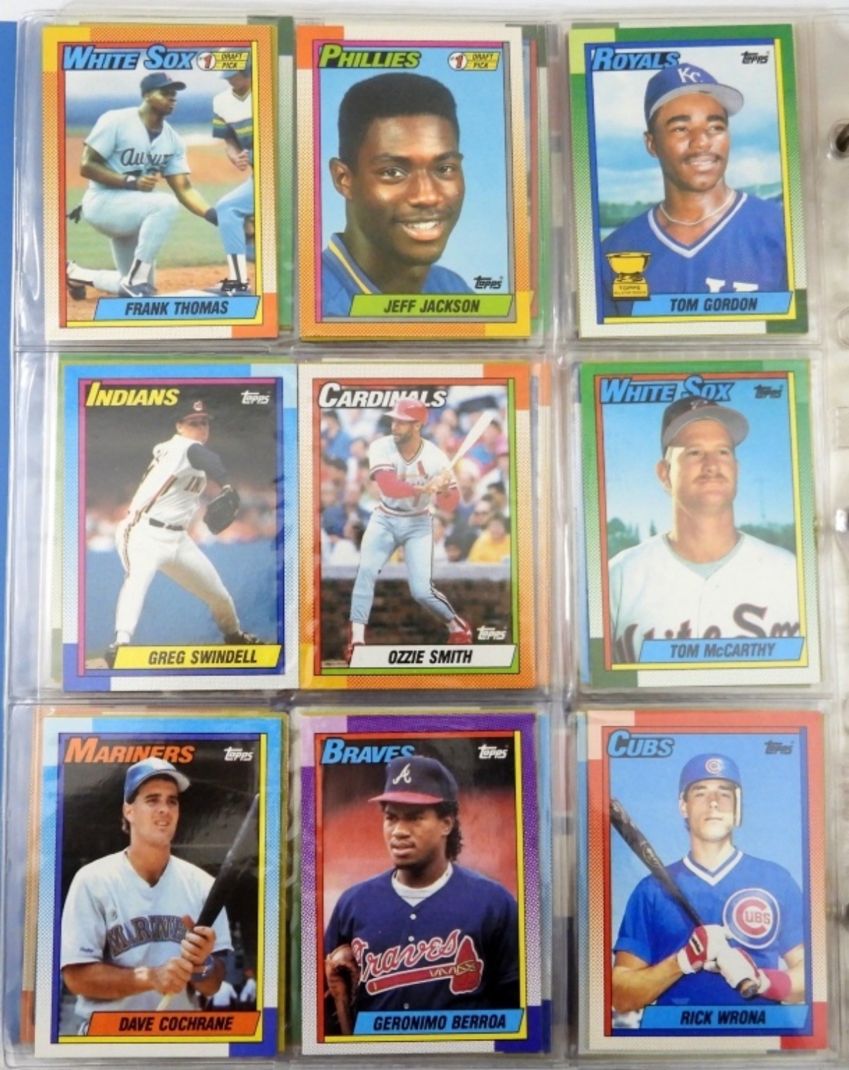 MOSTLY 1980s/90s MIX – LOADED with STARS – FRANK THOMAS ROOKIE, RIPKEN JR, BONDS & MORE in SHEETS/ALBUM