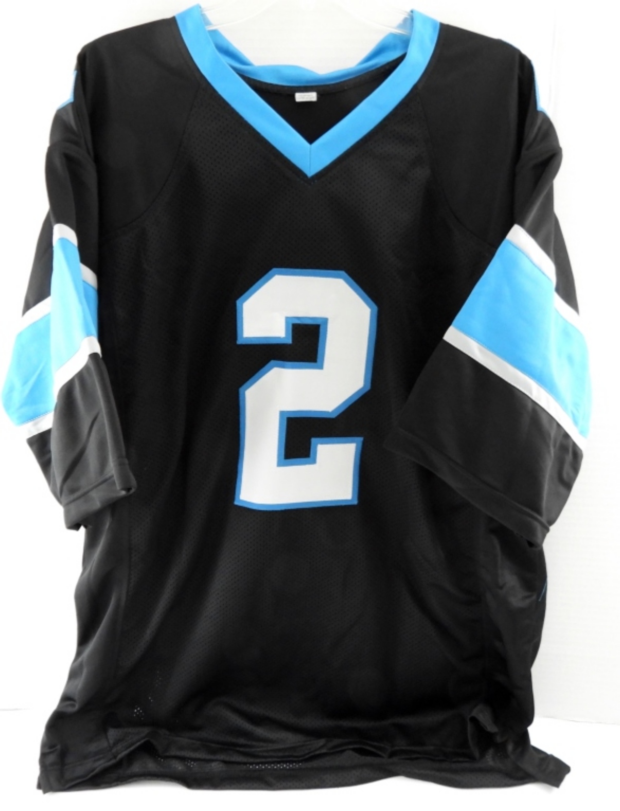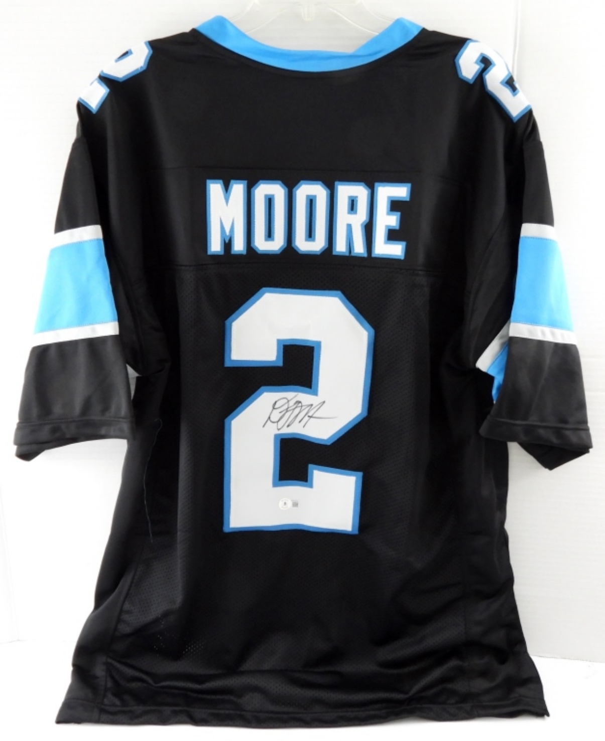 NFL CAROLINA PANTHERS, DJ MOORE #2 SIGNED JERSEY. SIZE MEN’S XL. NOT A NAME BRAND. “BECKETT WITNESSED” COA # WV94620 (AUTHENTICATION NOT FOUND ON BECKETT’S WEBSITE!).