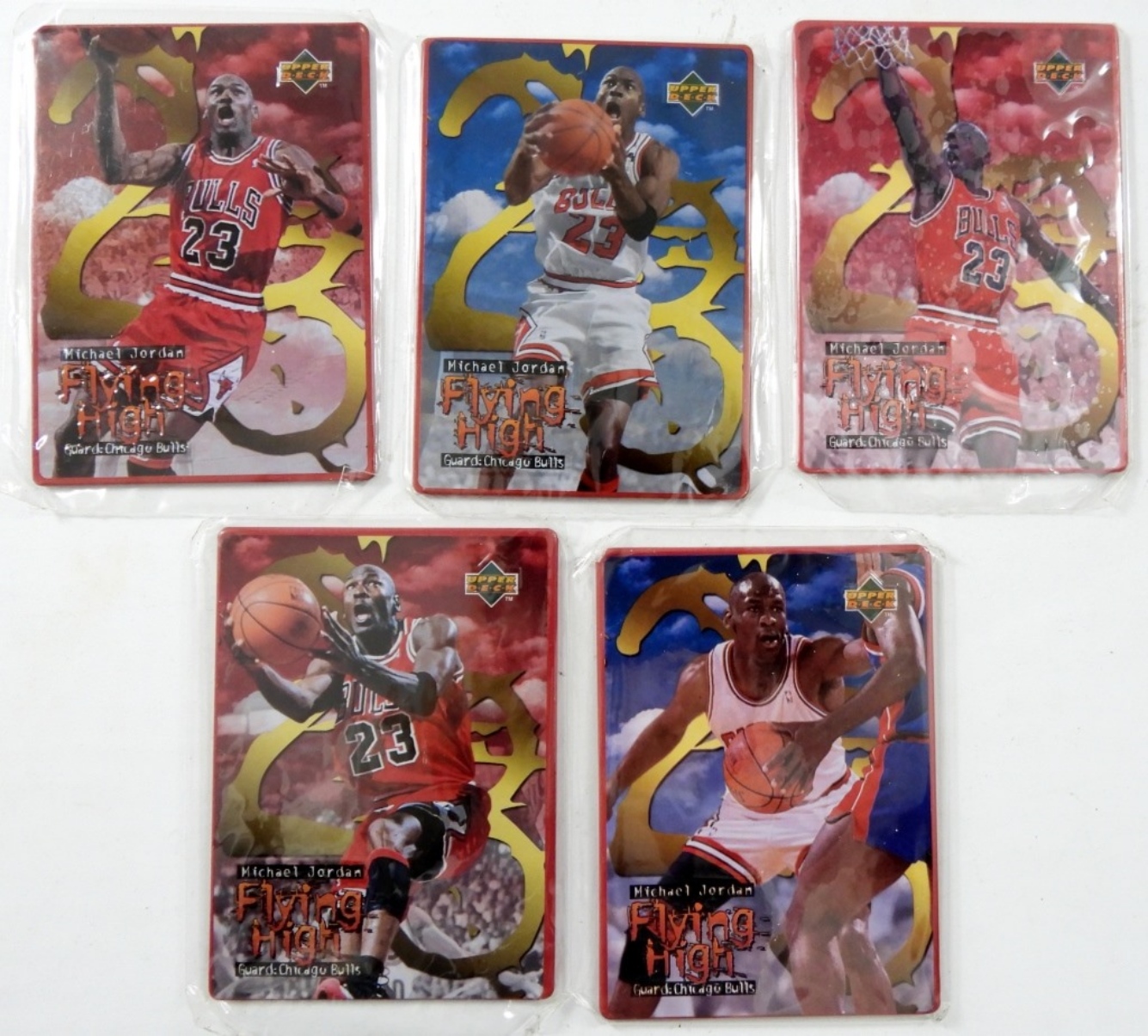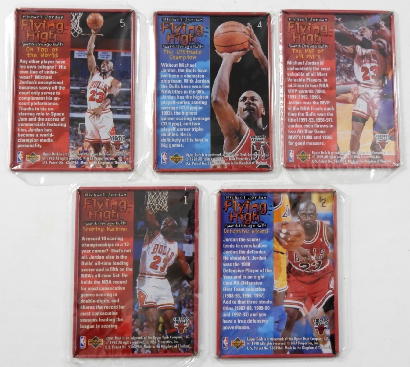 MICHAEL JORDAN, AVON, FLYING HIGH METAL CARD SET. IN ORIGINAL TIN & BOX! 5 METAL CARDS STILL IN PLASTIC.