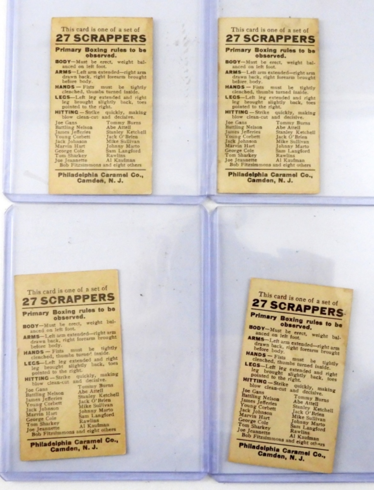 E79 – 27 SCRAPPERS CARDS – MARVIN HART, JOE JEANETTE, RAWLINS, BOB FITZSIMMONS