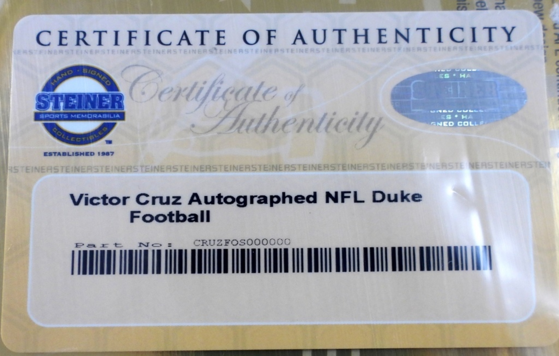 COA FROM STEINER, NOT VERIFIED HOLOGRAM STICKER ON BALL IS MISSING SERIAL NUMBER, DOES COME WITH A STEINER COA CARD, SIGNED ON AN NFL AUTHENTIC “THE DUKE ” WILSON FOOTBALL