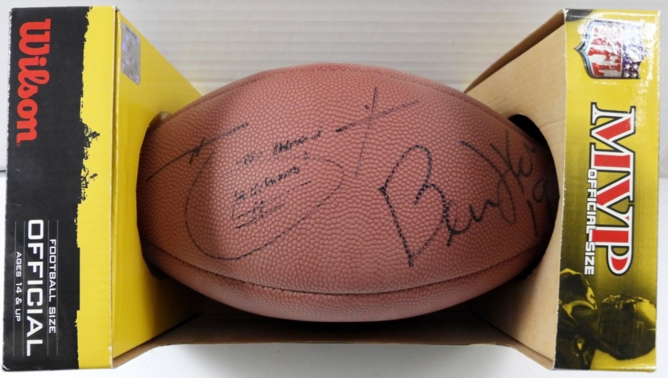 NO COA, UNVERIFIED, SIGNED ON AN MVP NFL FOOTBALL BY WILSON