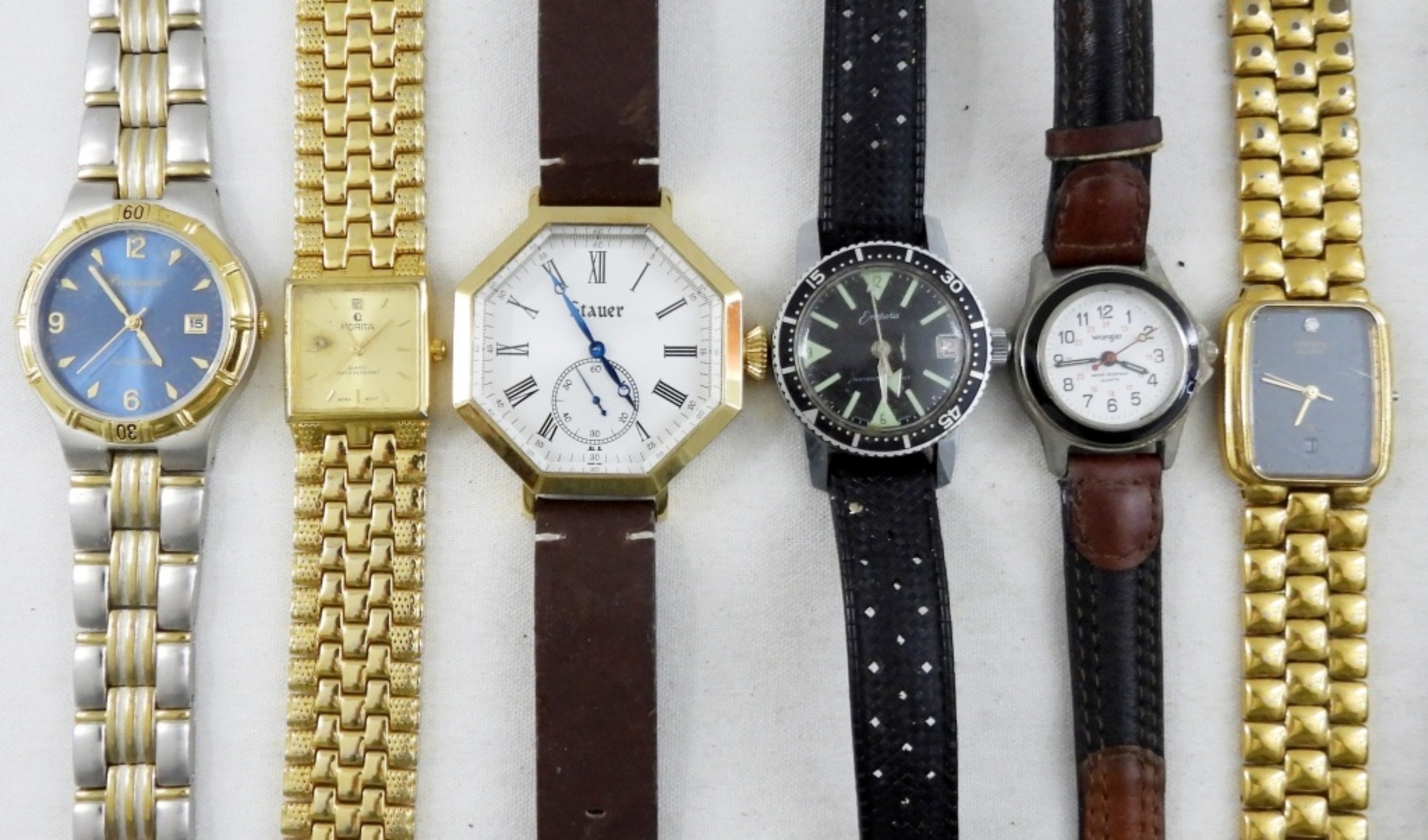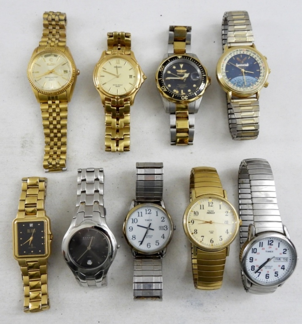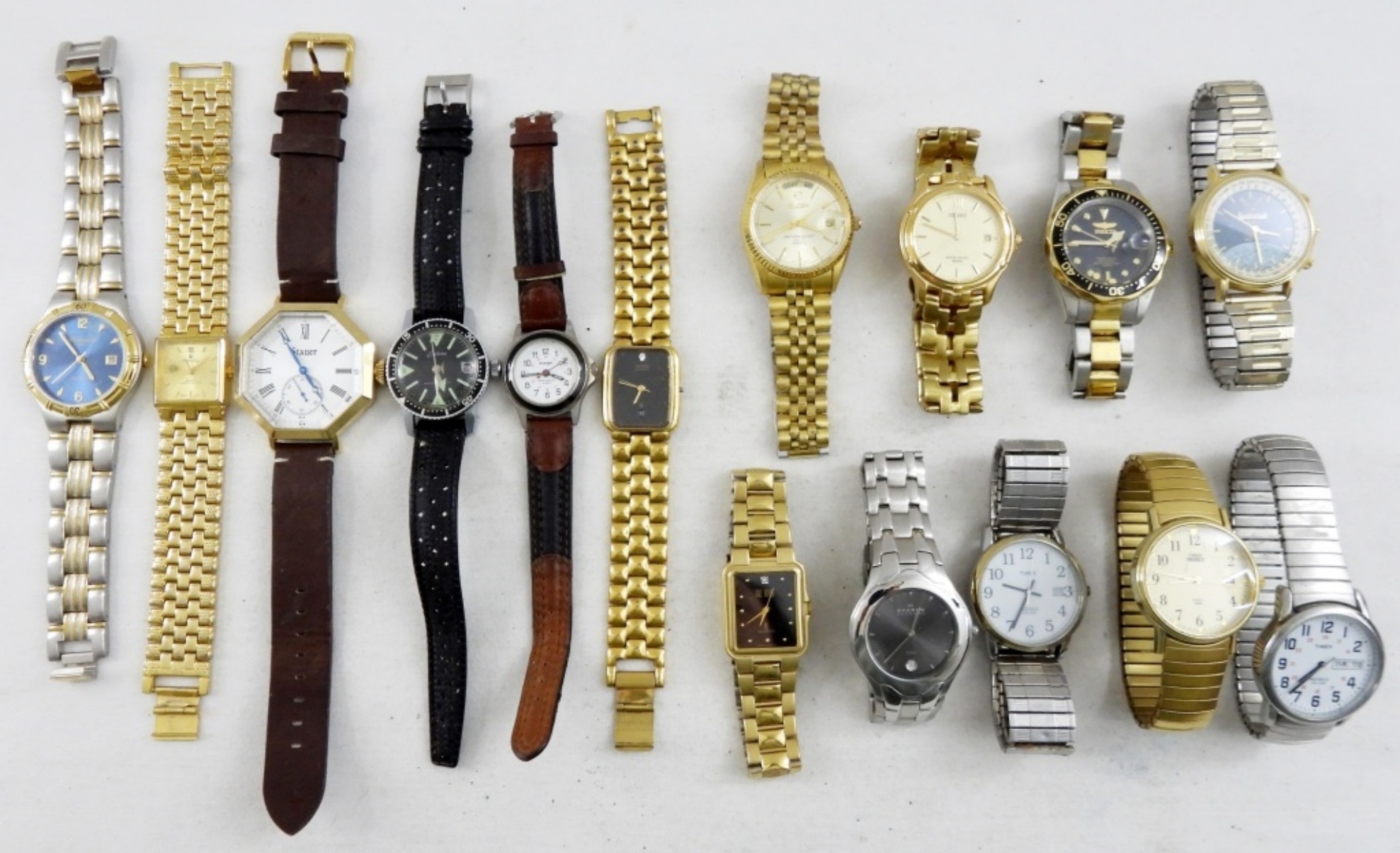 15 MEN’S WATCHES. VINTAGE TO MODERN. TIMEX, BILL BLASS, WRANGLER, STAUER, ELGIN, SEIKO & MORE-NOT TESTED AS TO WORKING OR NOT-