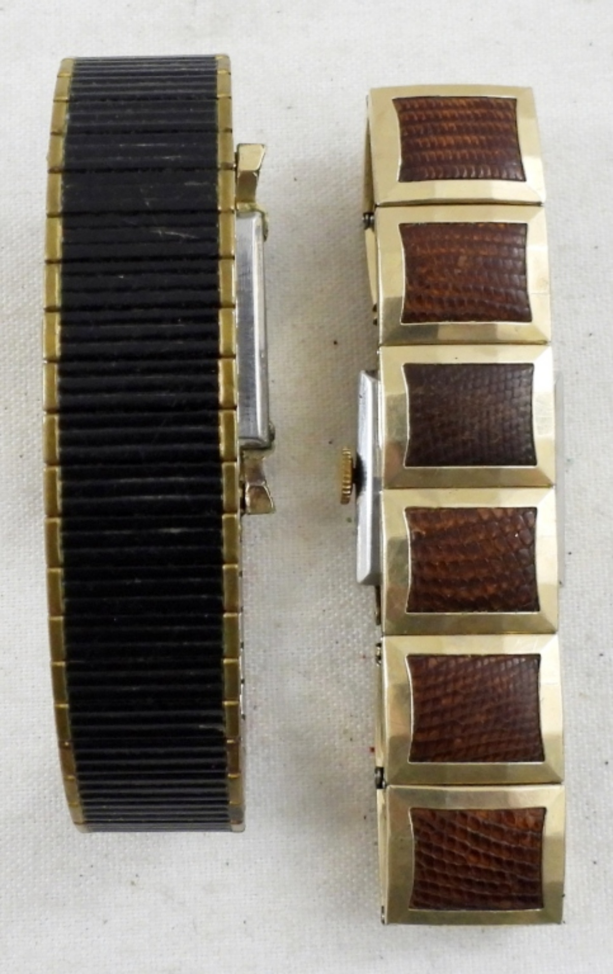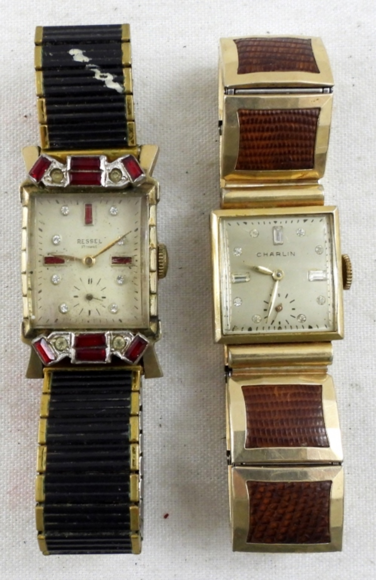 TWO JEWELED VINTAGE WATCHES WITH STRETCHY BANDS. RESSEL & CHARLIN. -NOT TESTED AS TO WORKING OR NOT-