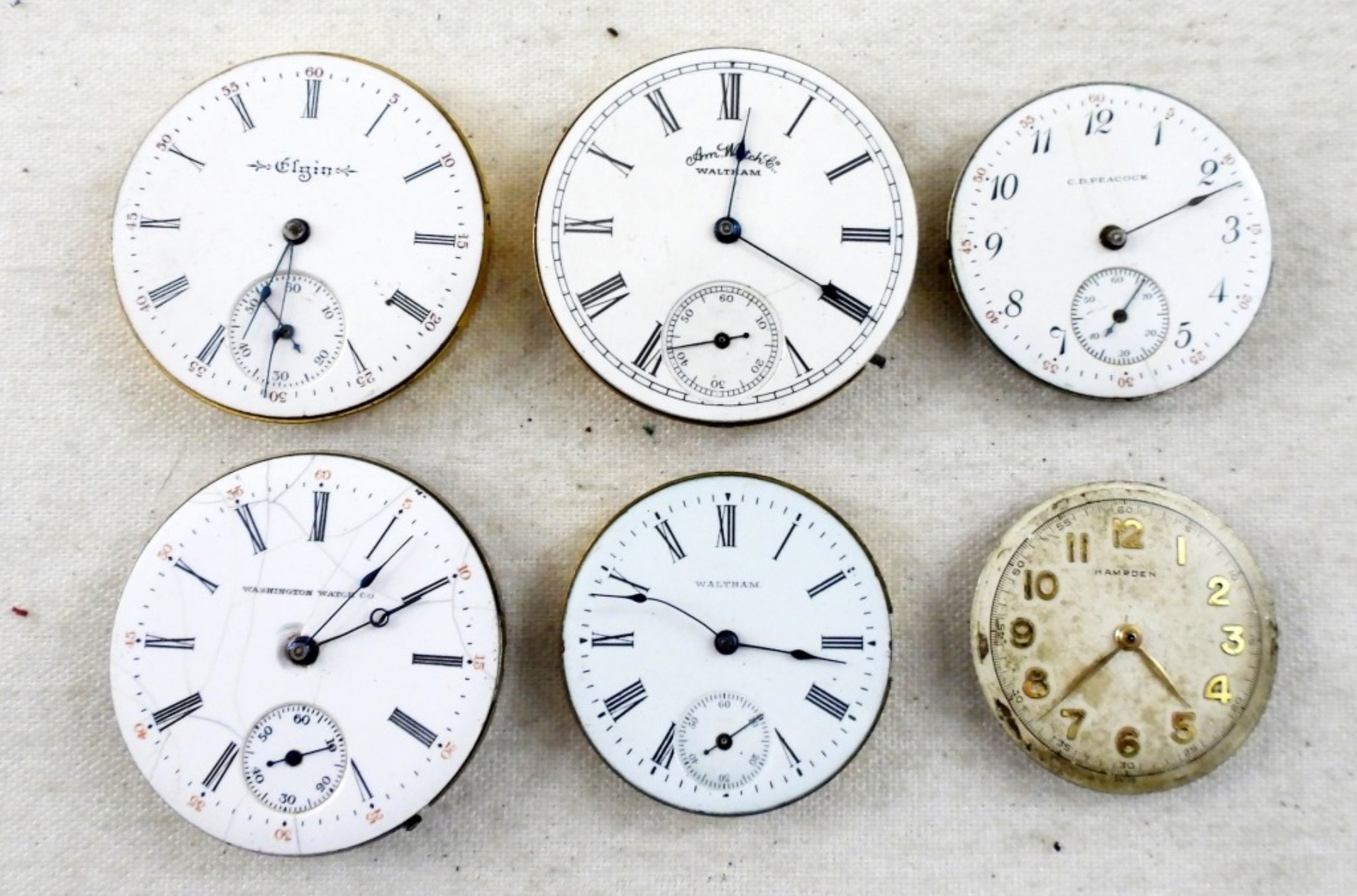 FOR PARTS AND REPAIR, C.D. PEACOCK, WASHINGTON WATCH CO., HAMPDEN, ELGIN, 2- WALTHAM